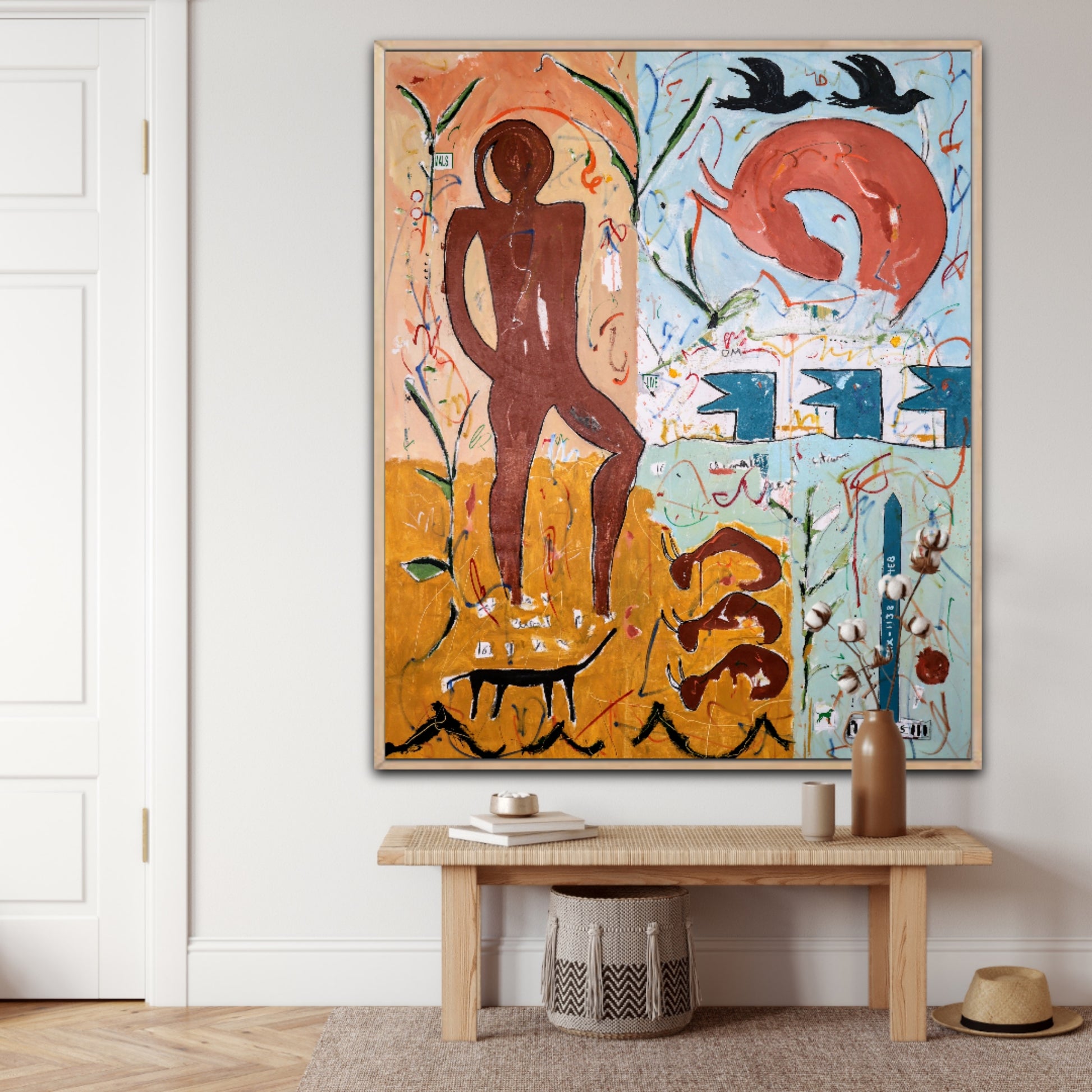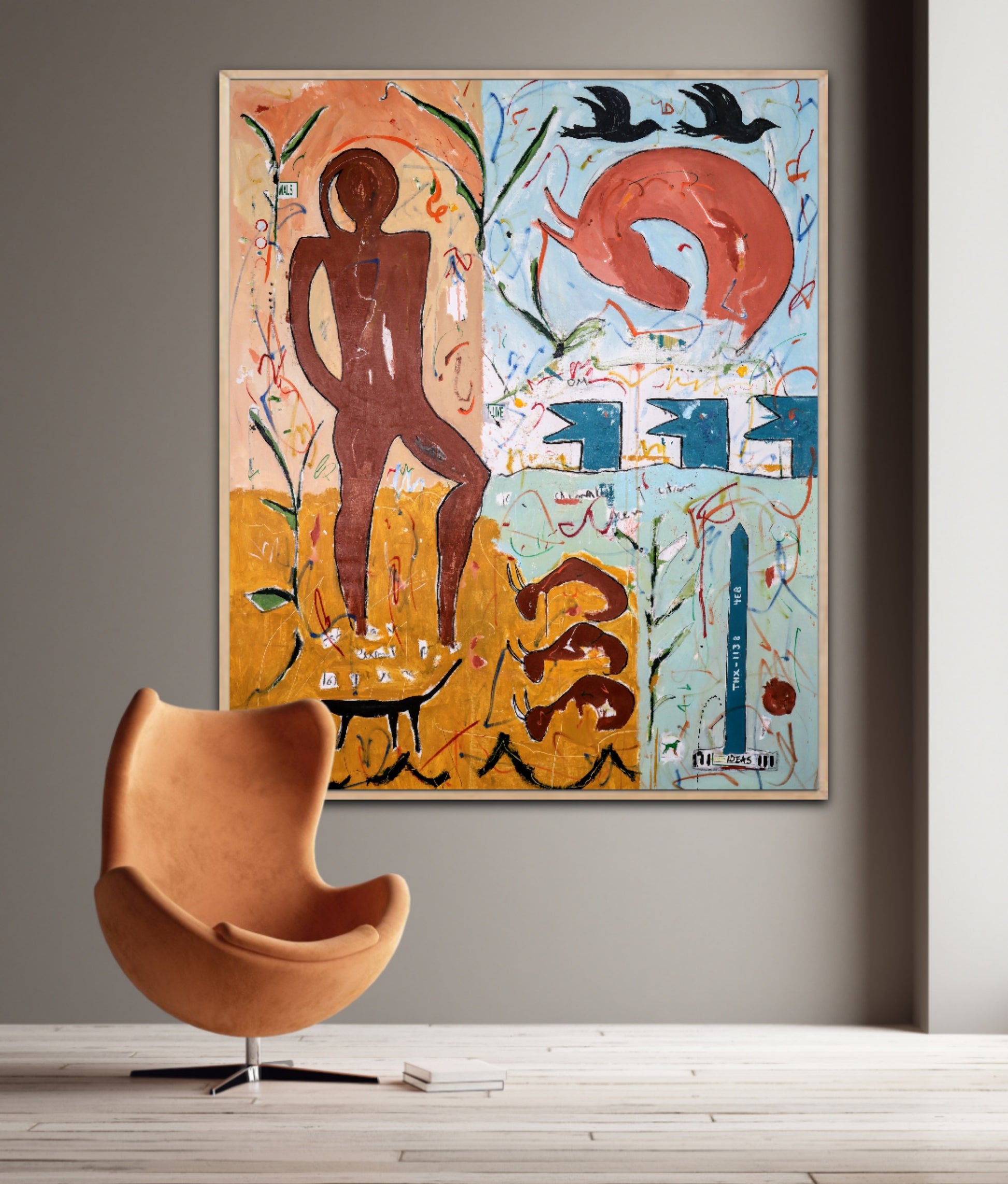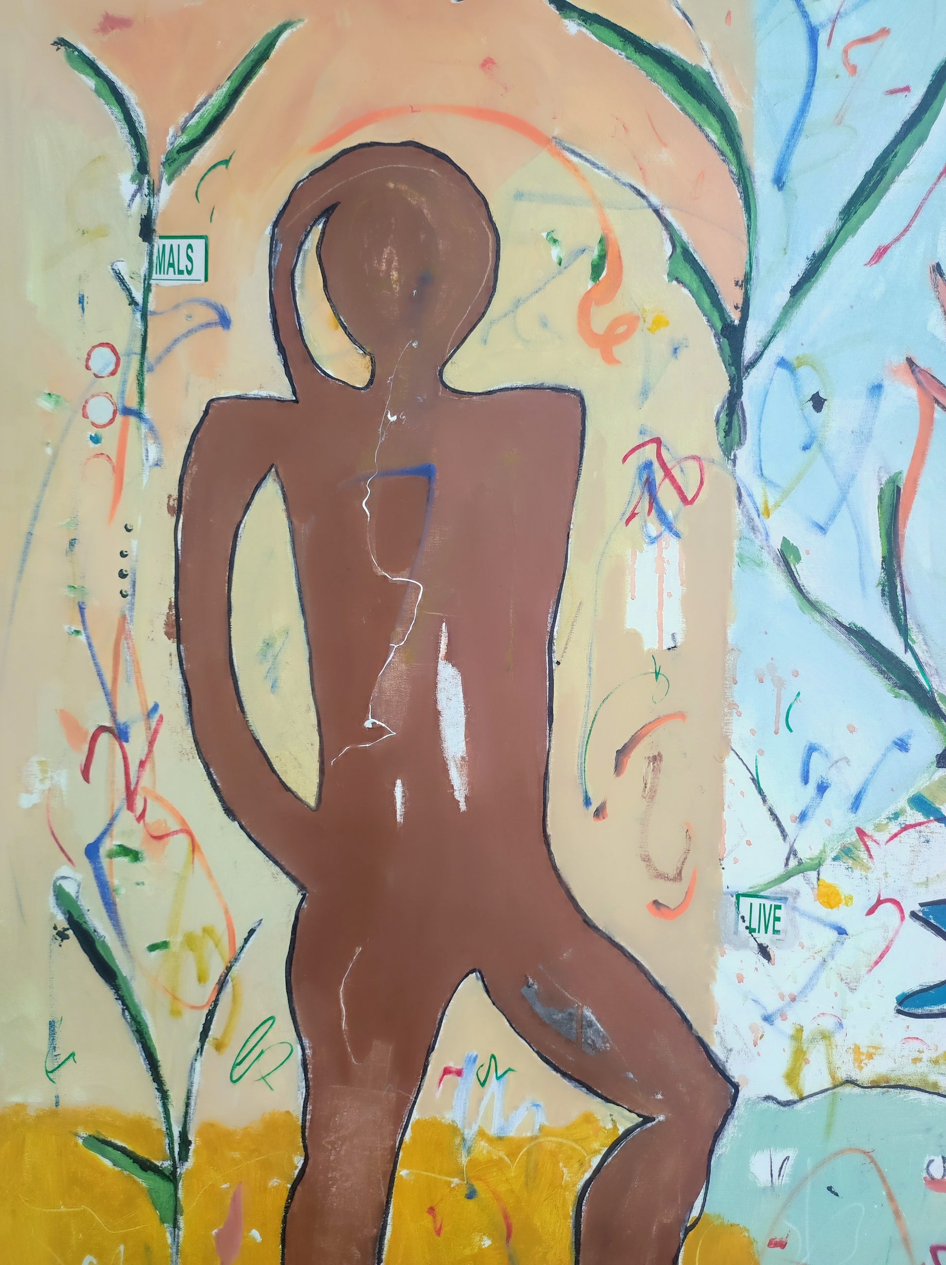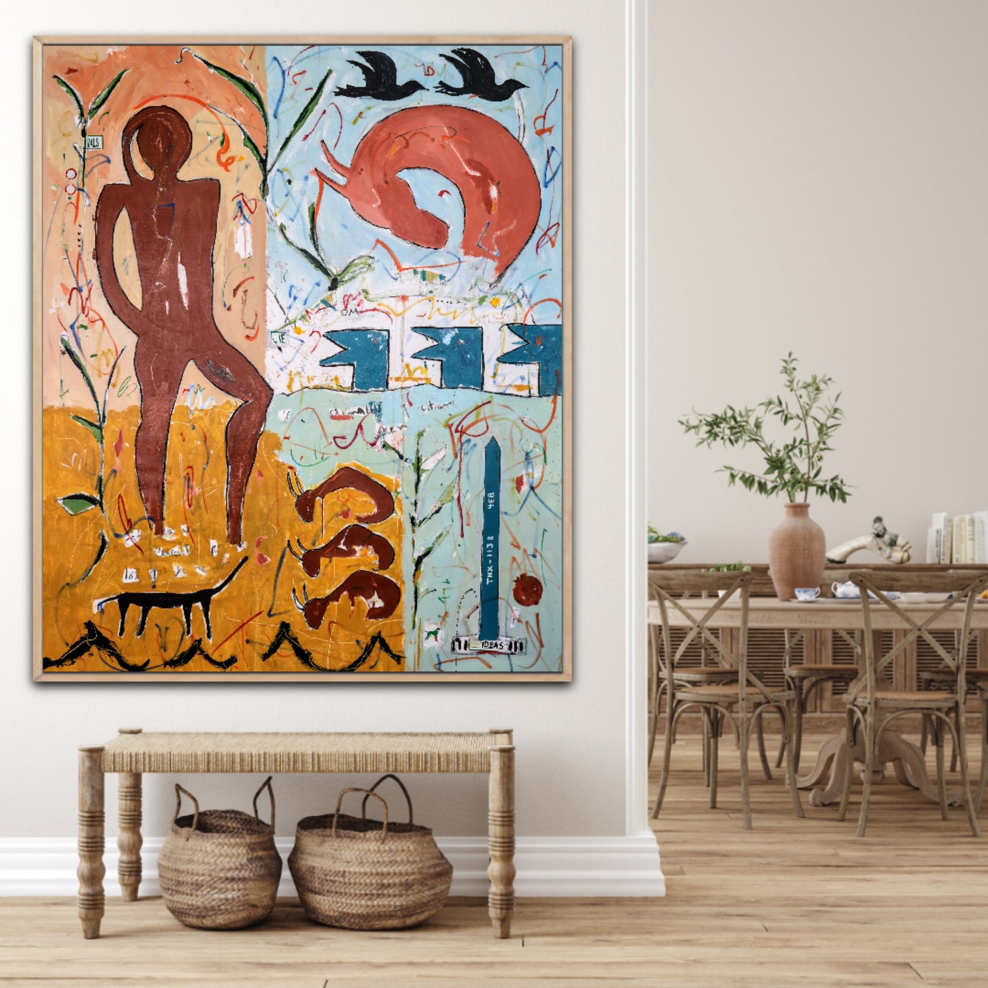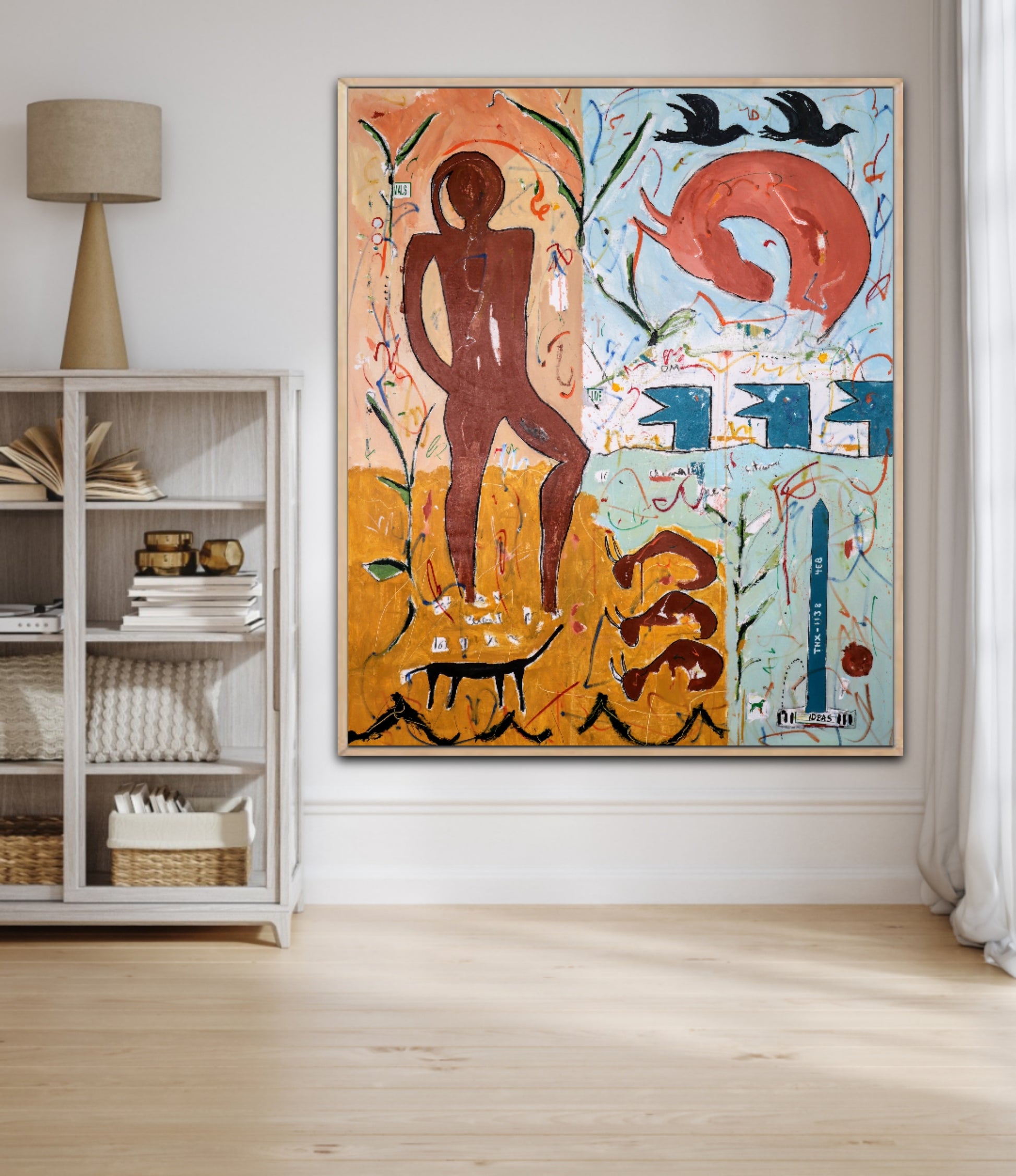 Técnica: acrílico, pigmentos, témpera, lápiz, carboncillo y pastel.