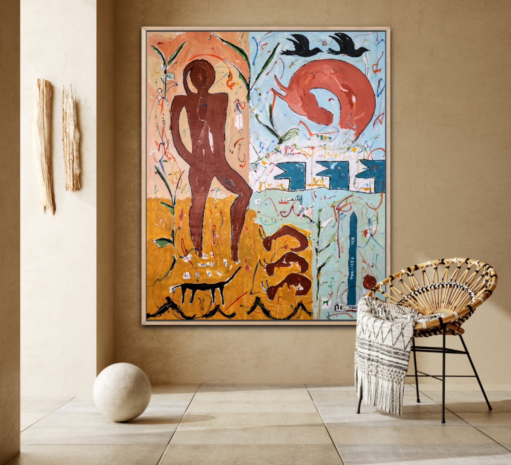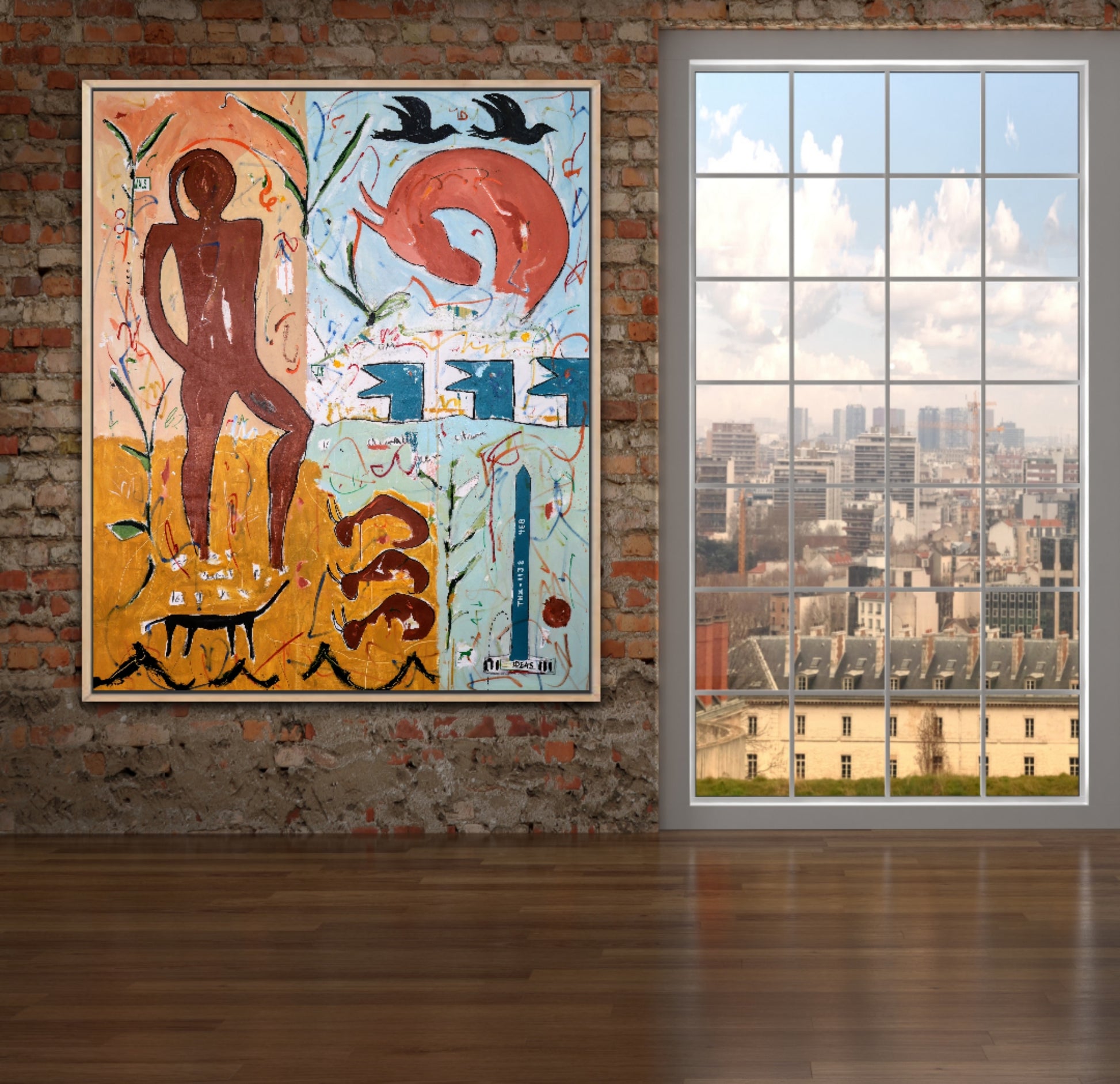 Paisaje, Naturaleza, seres de este mundo y de otros ... todo pasado por el filtro de un sueño y construido sobre un muro marcado por el grafiti, la suciedad y el paso del tiempo, en una gran ciudad.