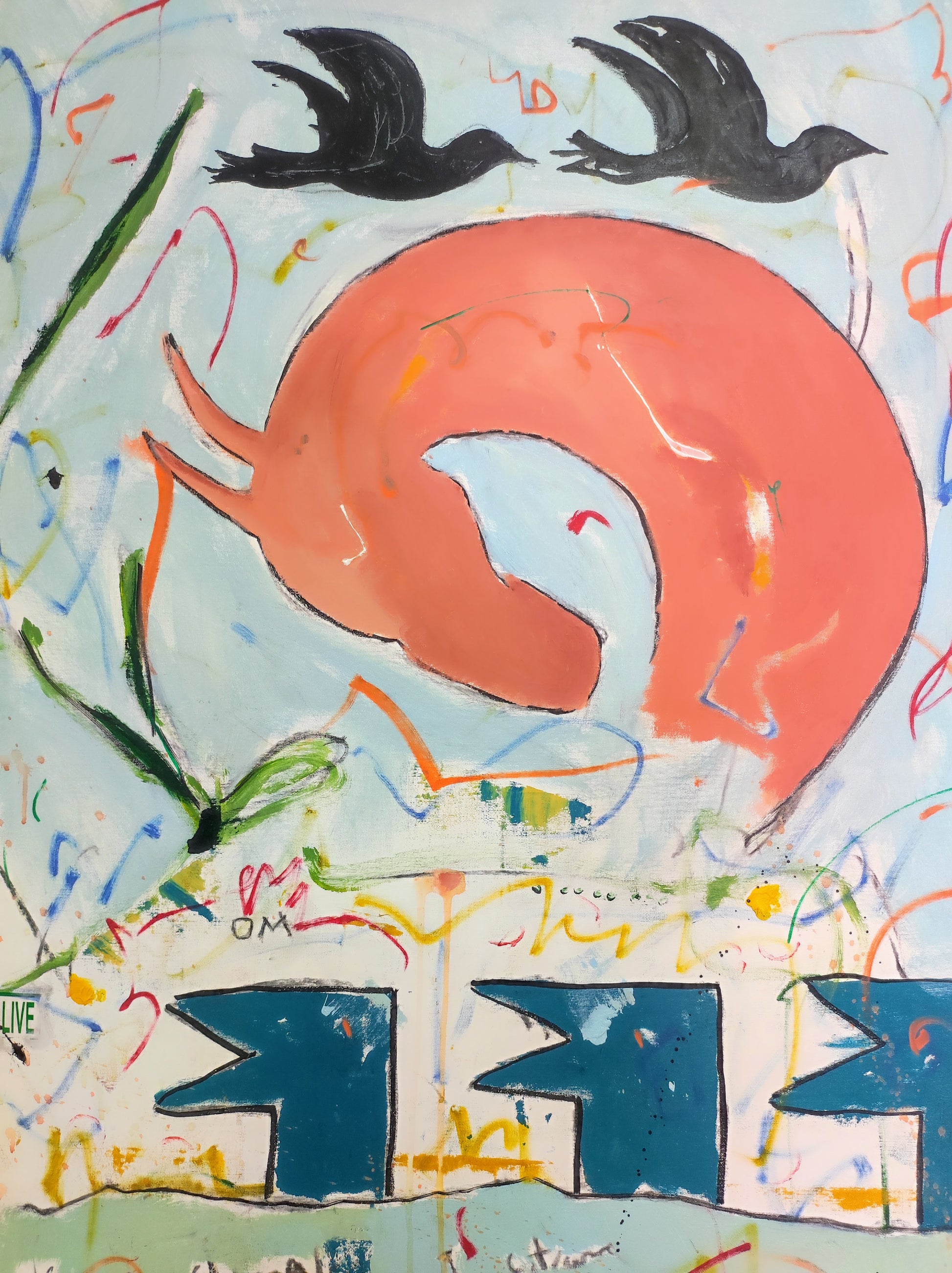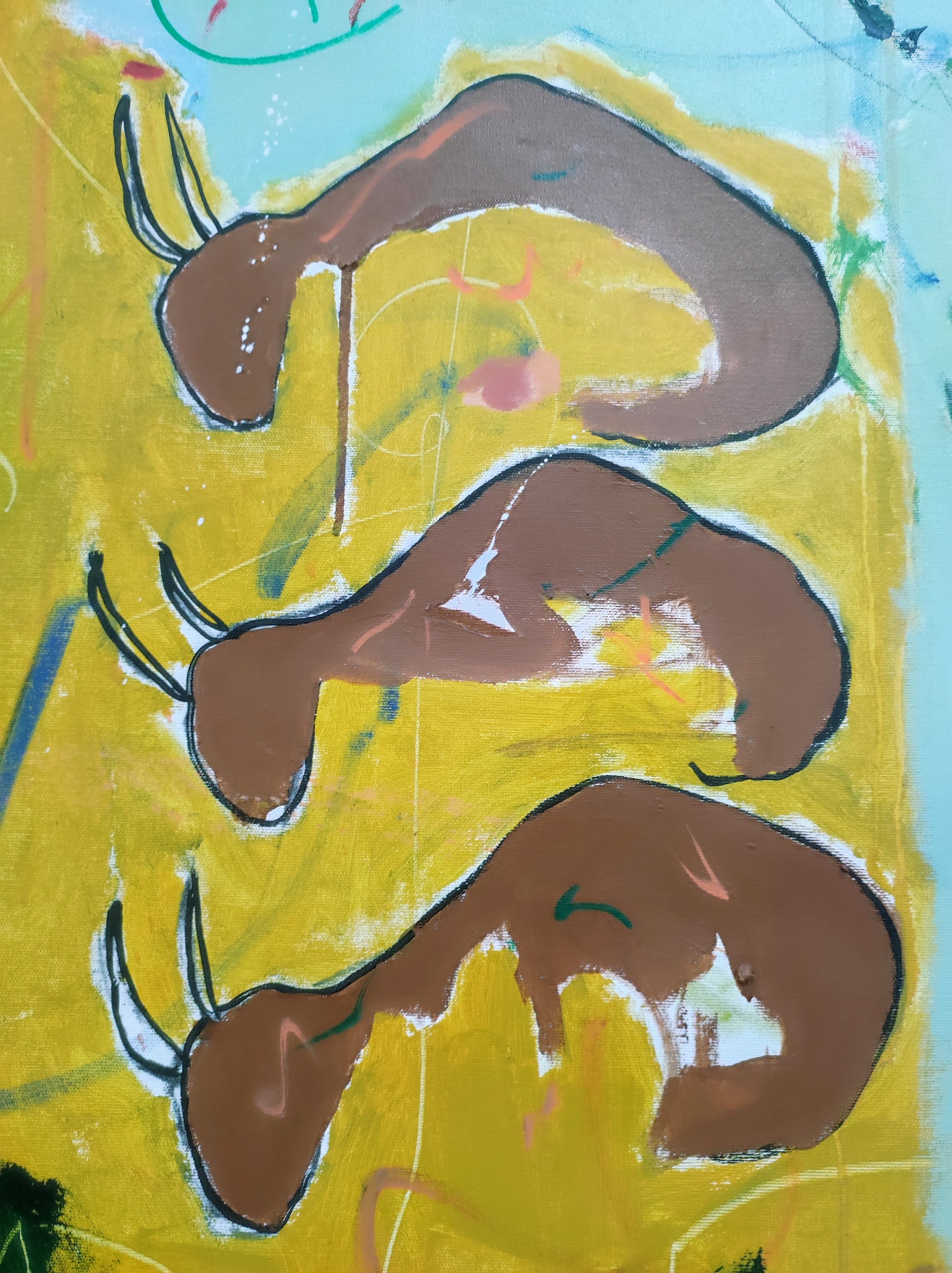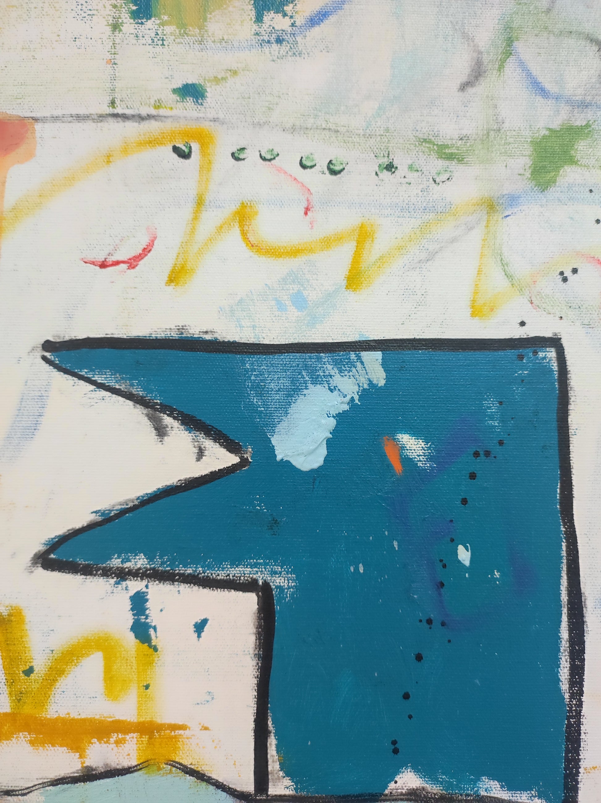 Cuadro trabajado desde la improvisación libre. Action painting con música de Supersubmarina.