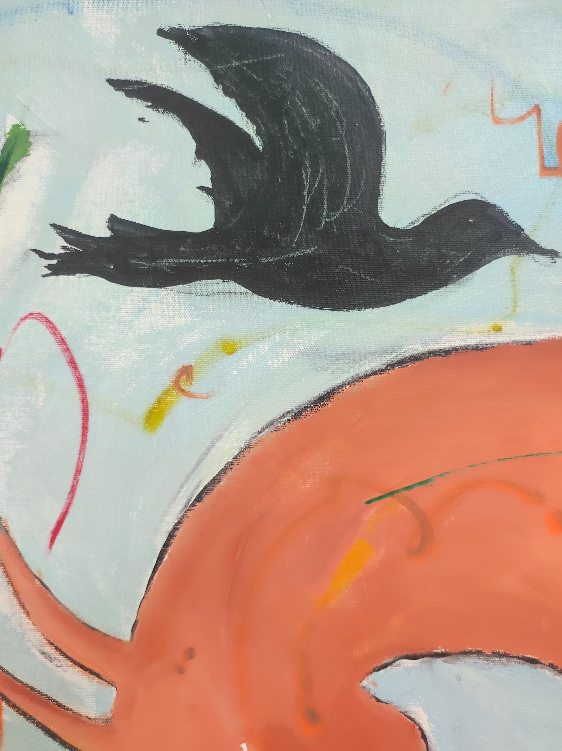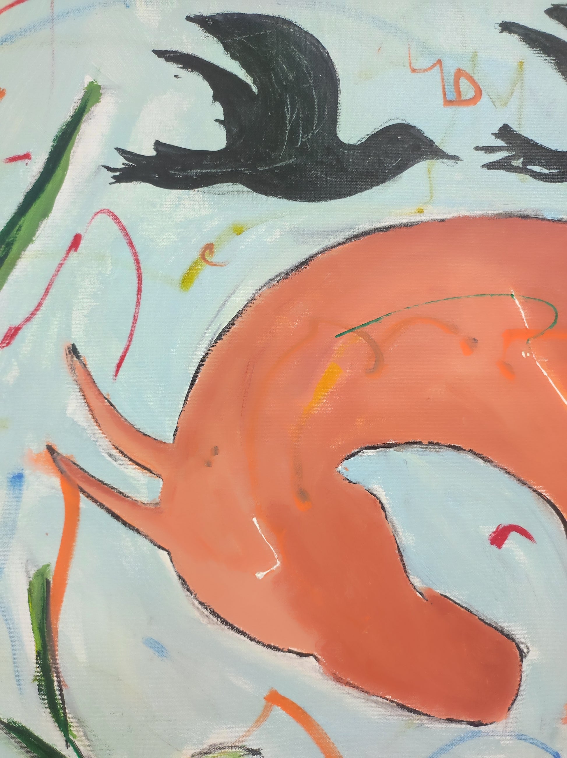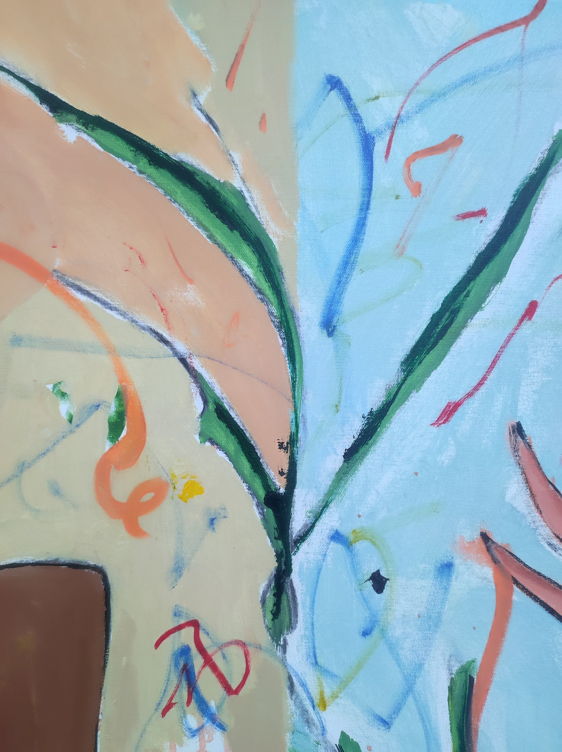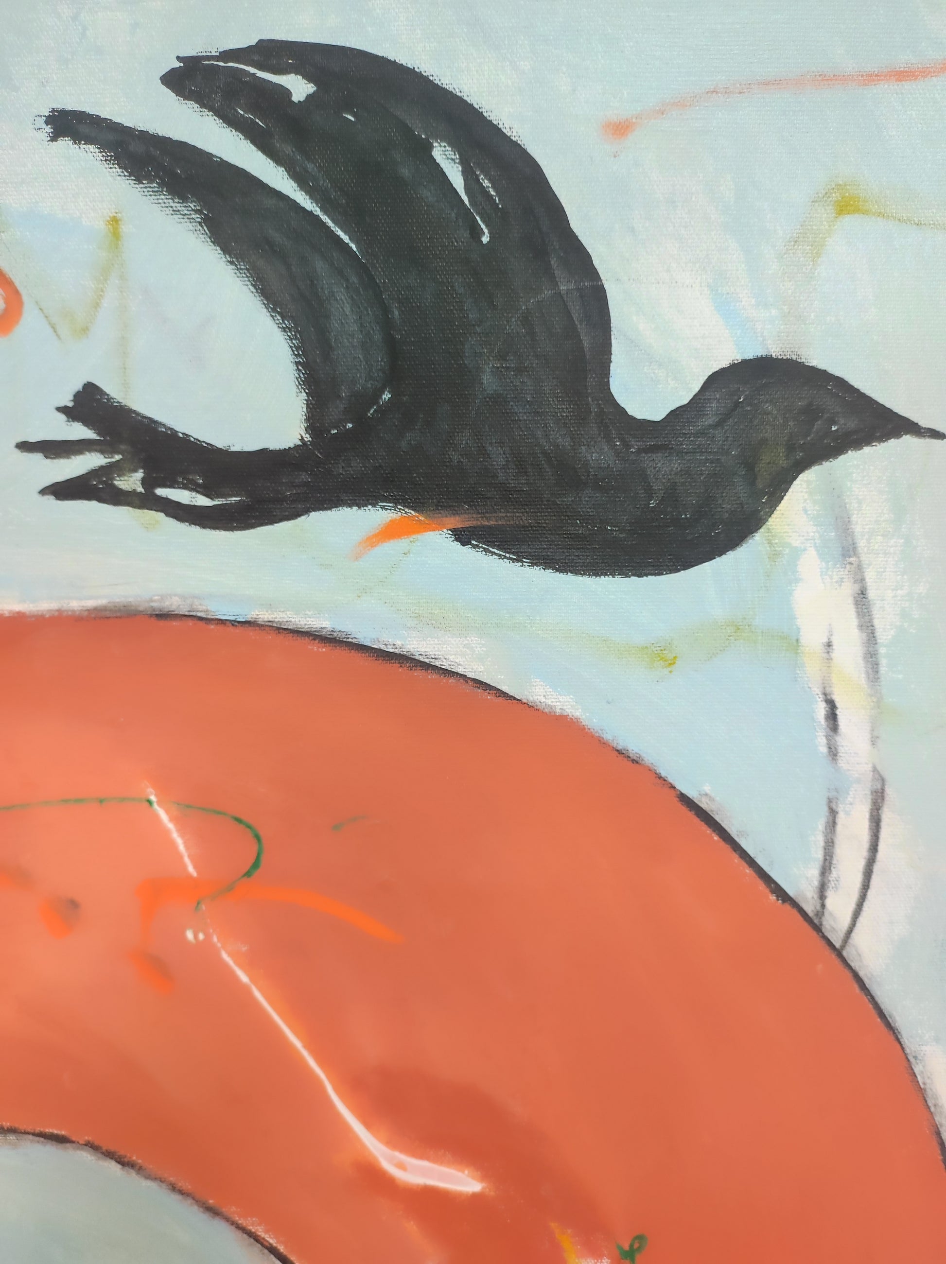 Cuadro trabajado desde la improvisación libre. Action painting con música de Supersubmarina.