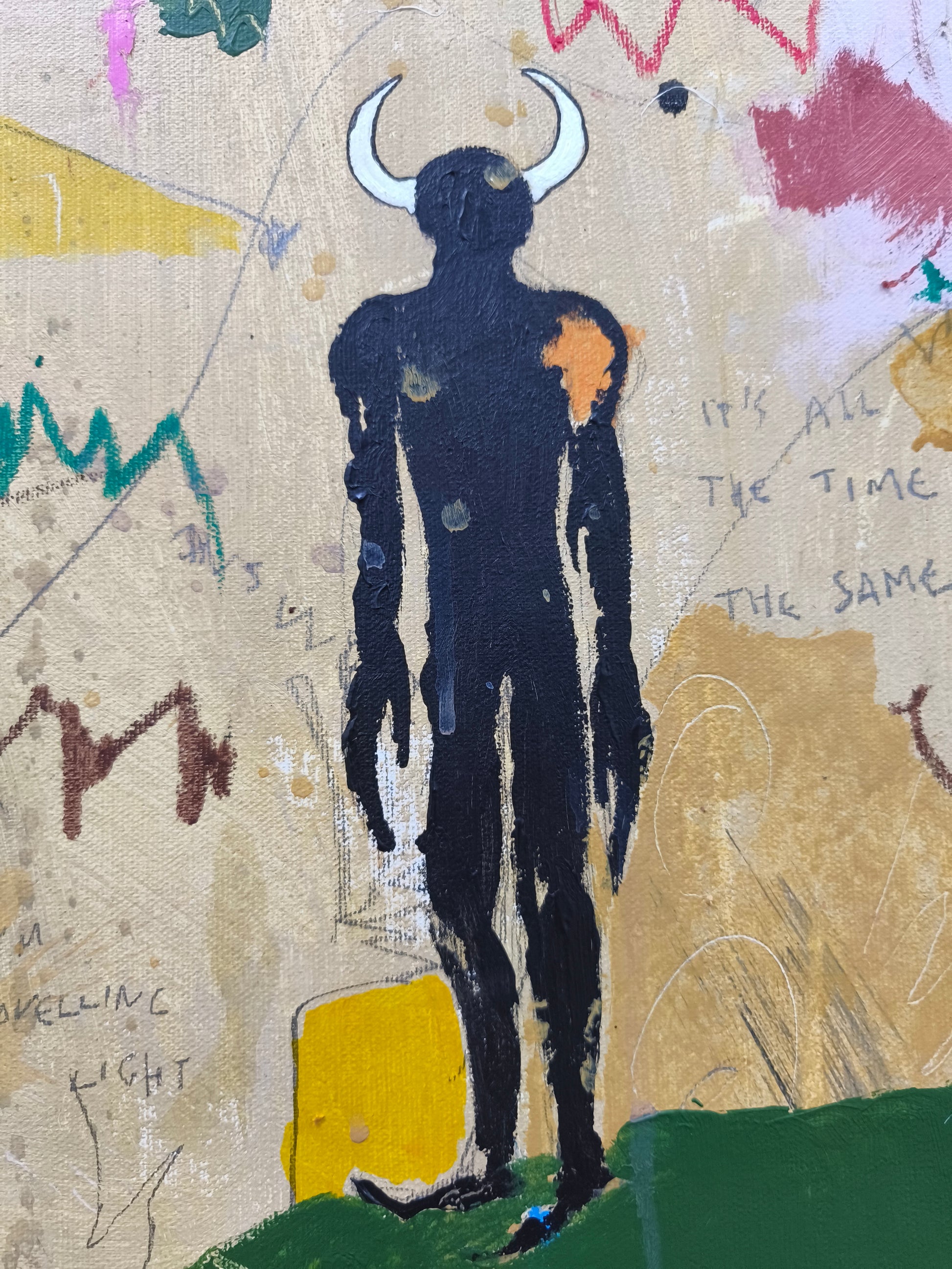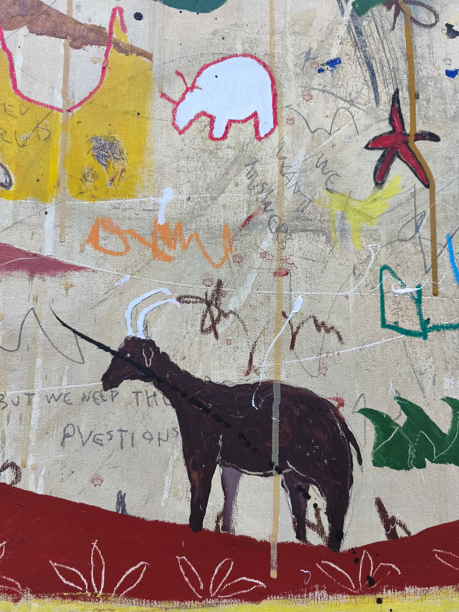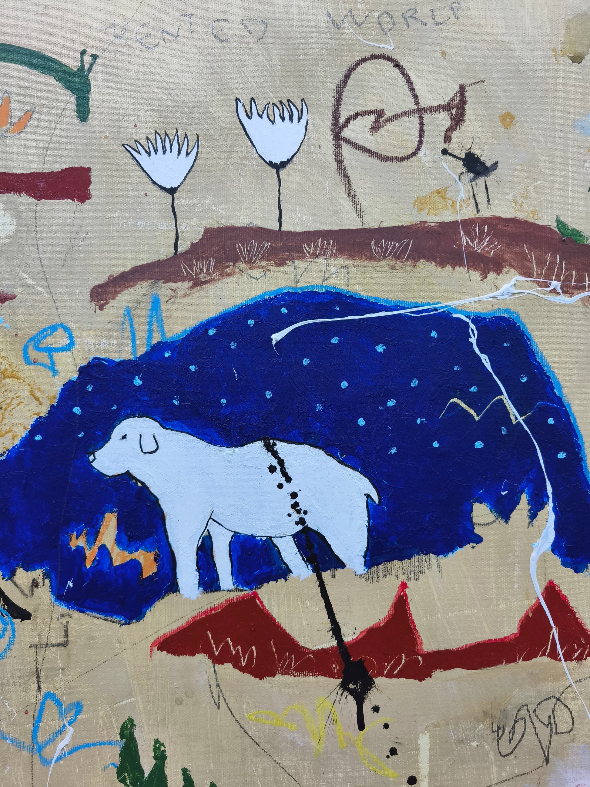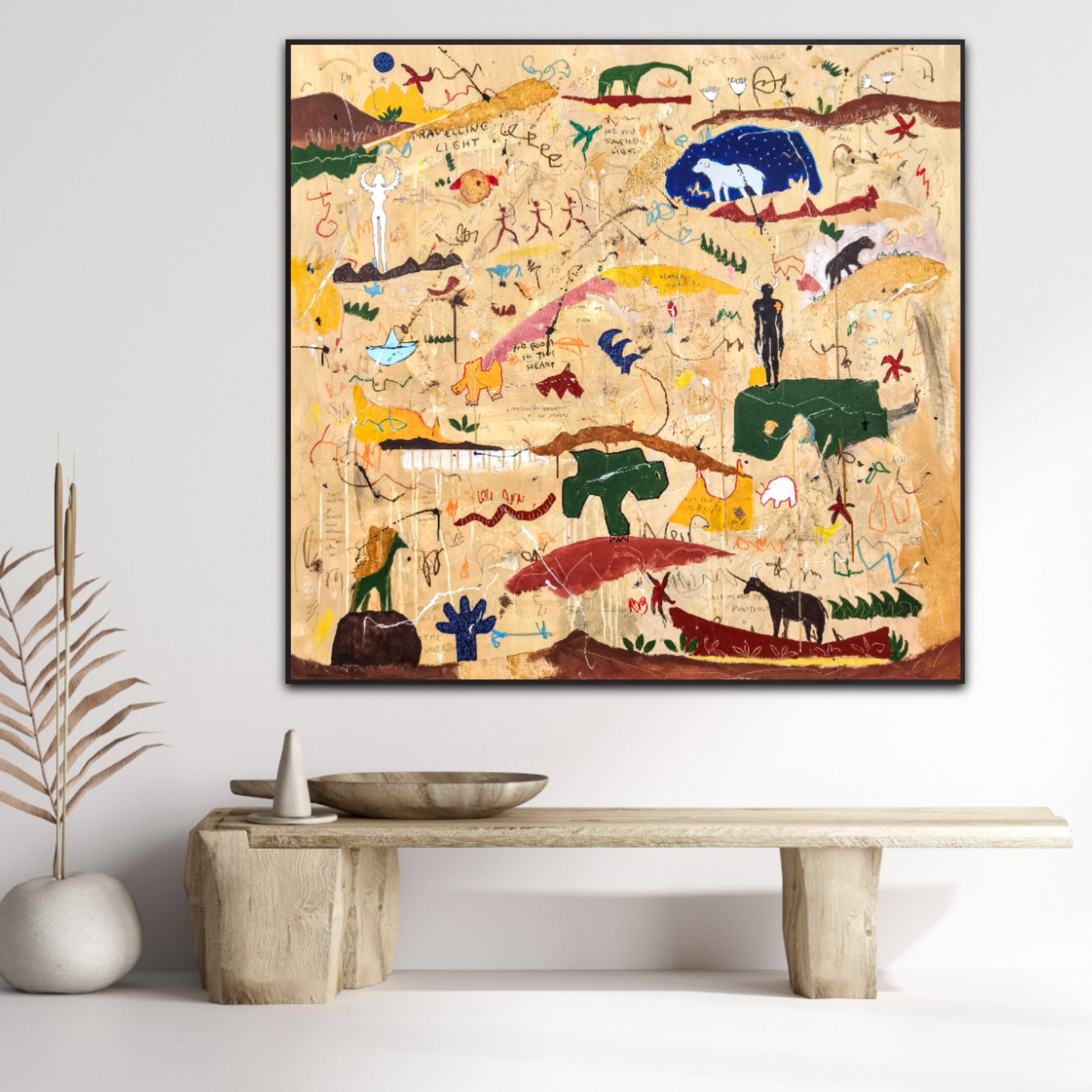 Técnica: acrílico, pigmentos, lápiz, ceras, carboncillo, tinta china y gesso.