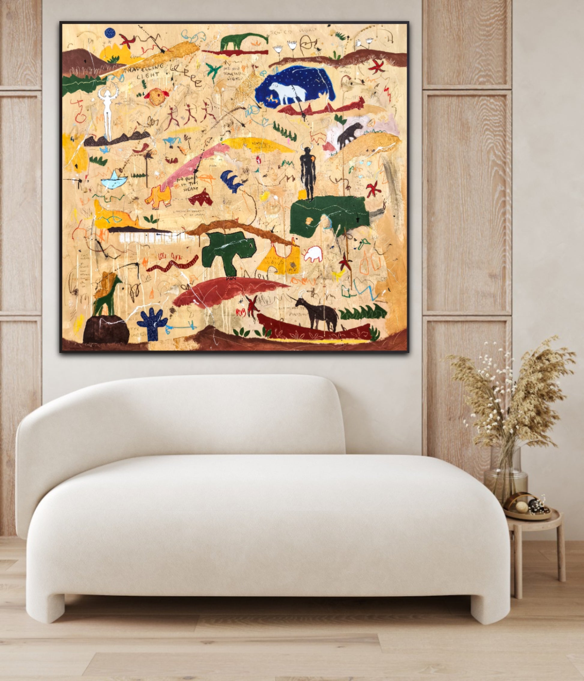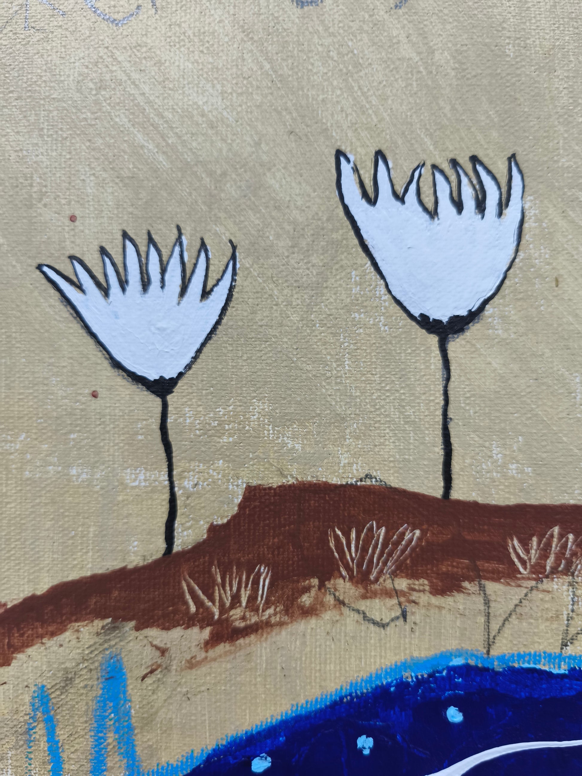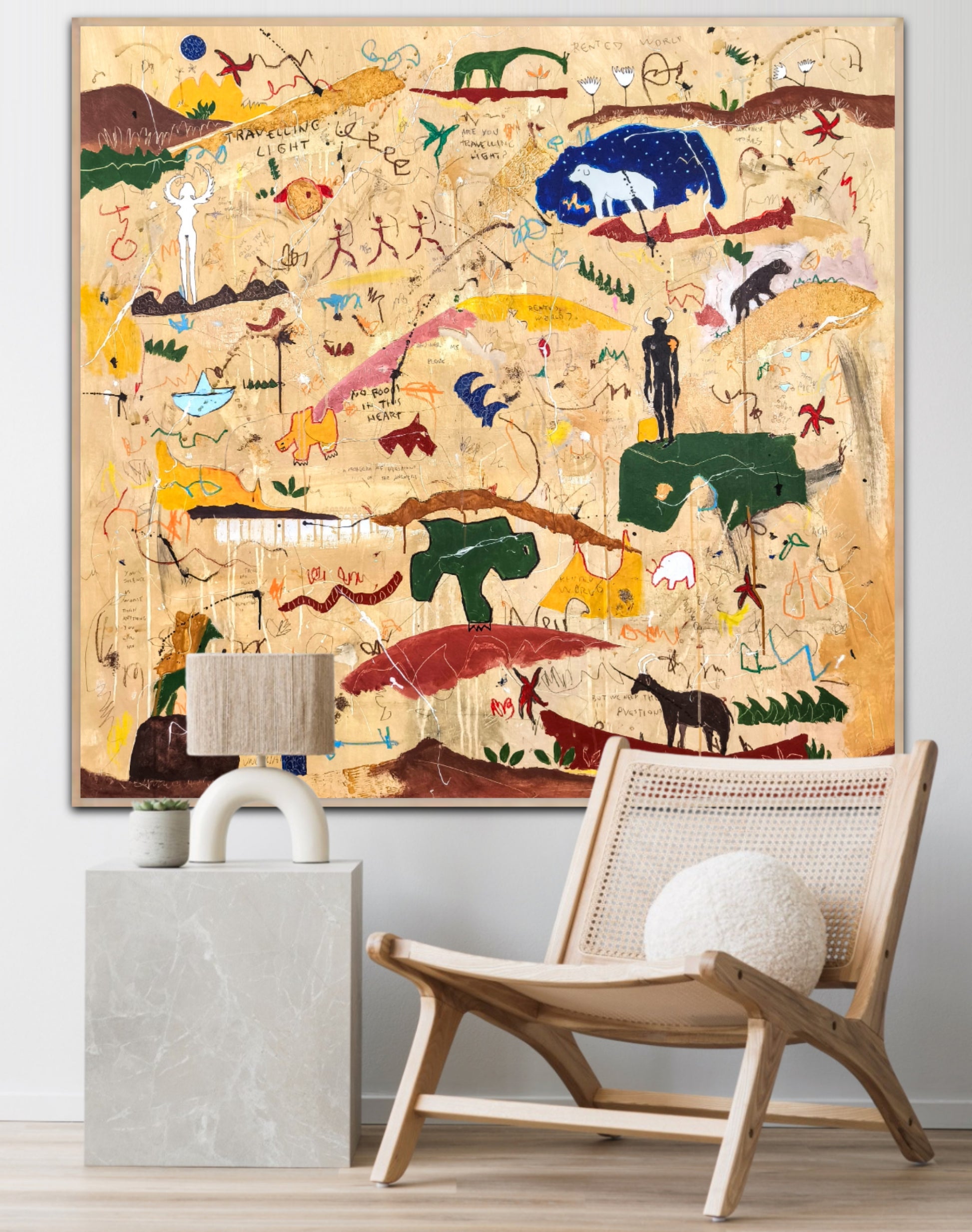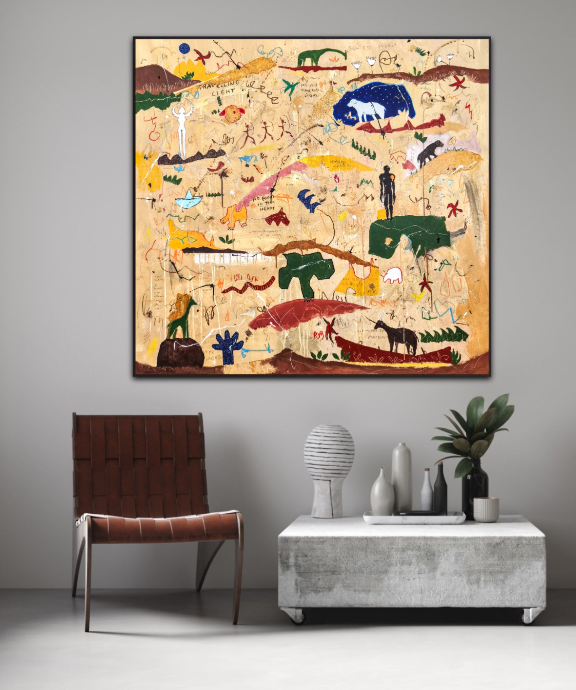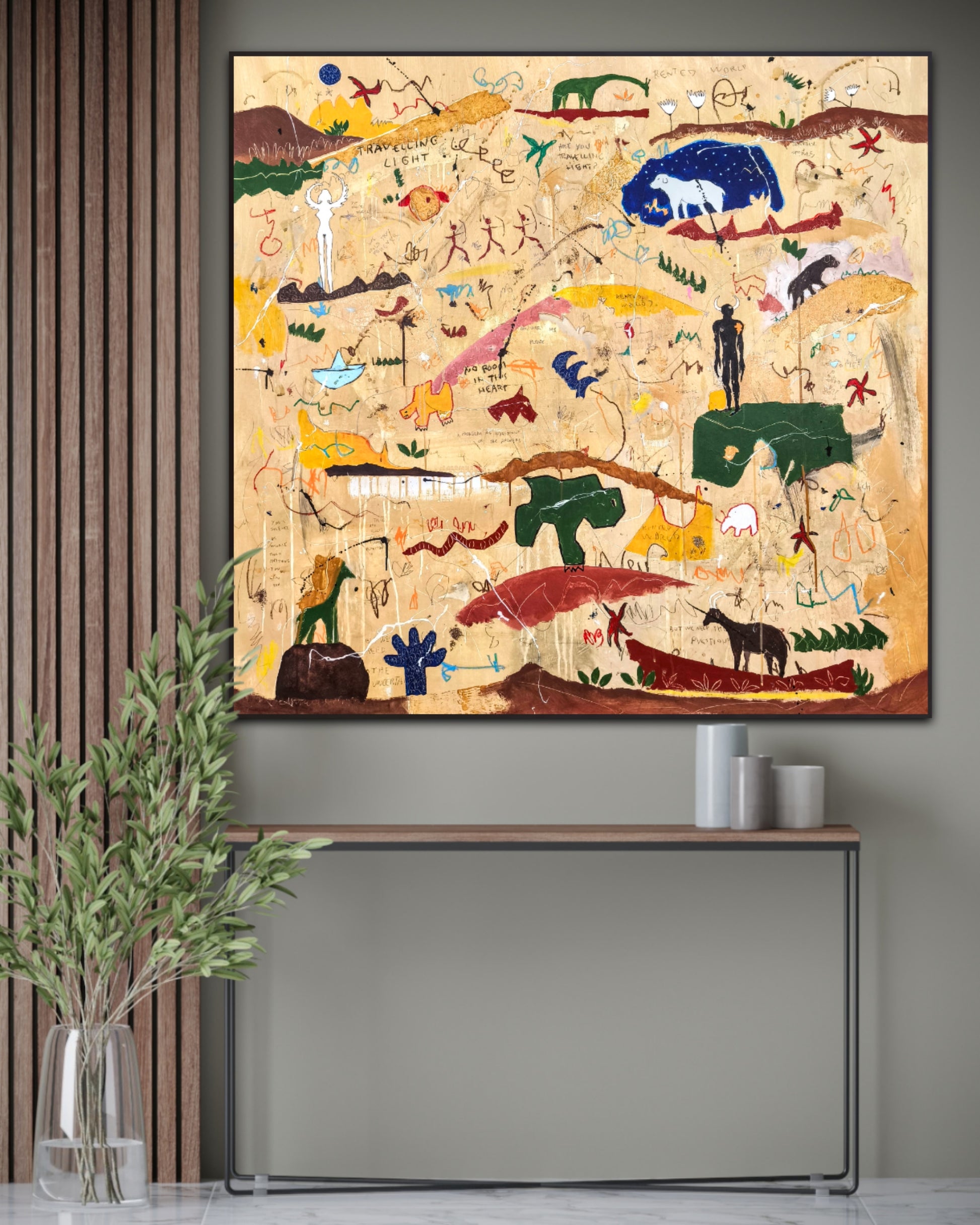 Técnica: acrílico, pigmentos, lápiz, ceras, carboncillo, tinta china y gesso.