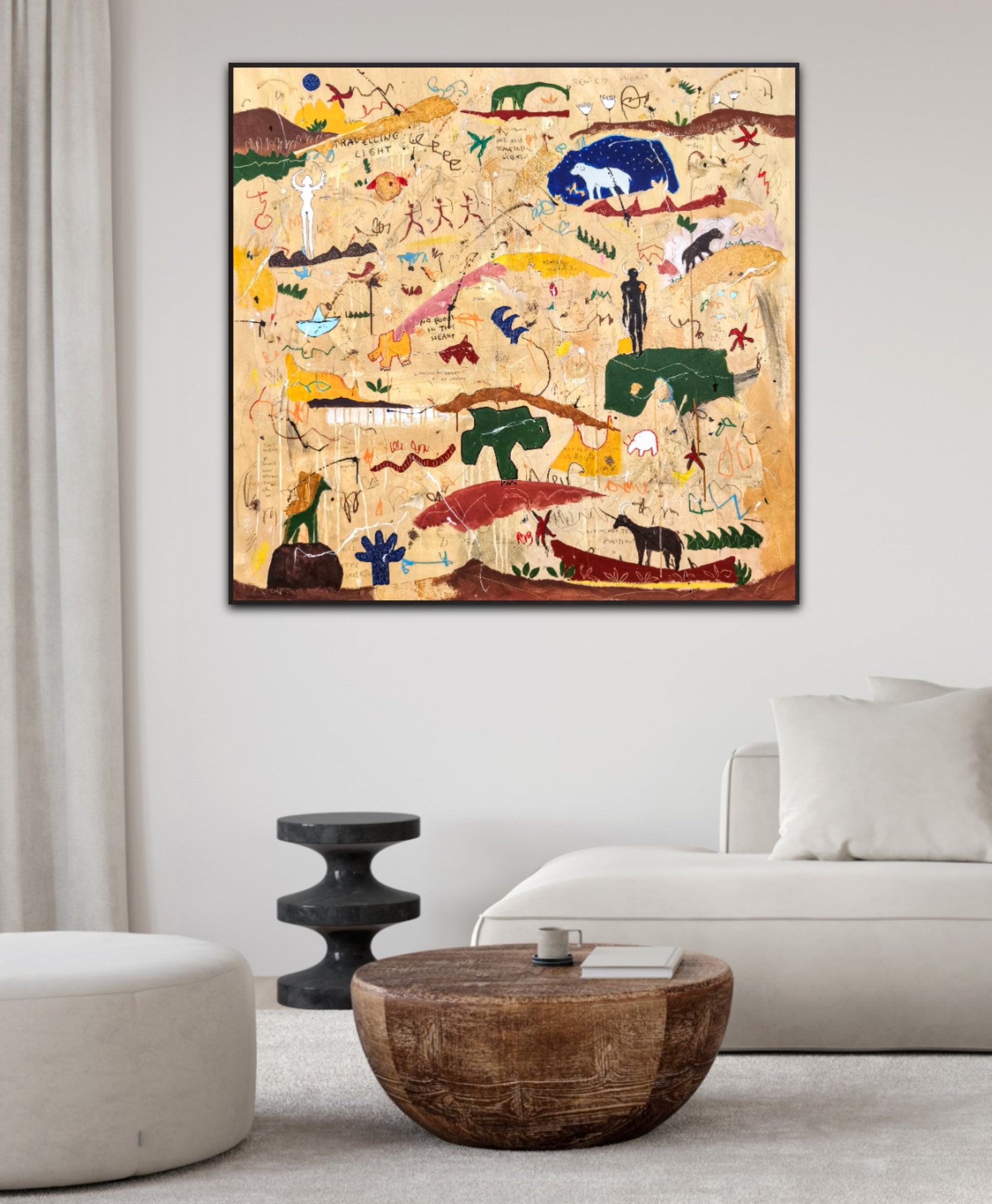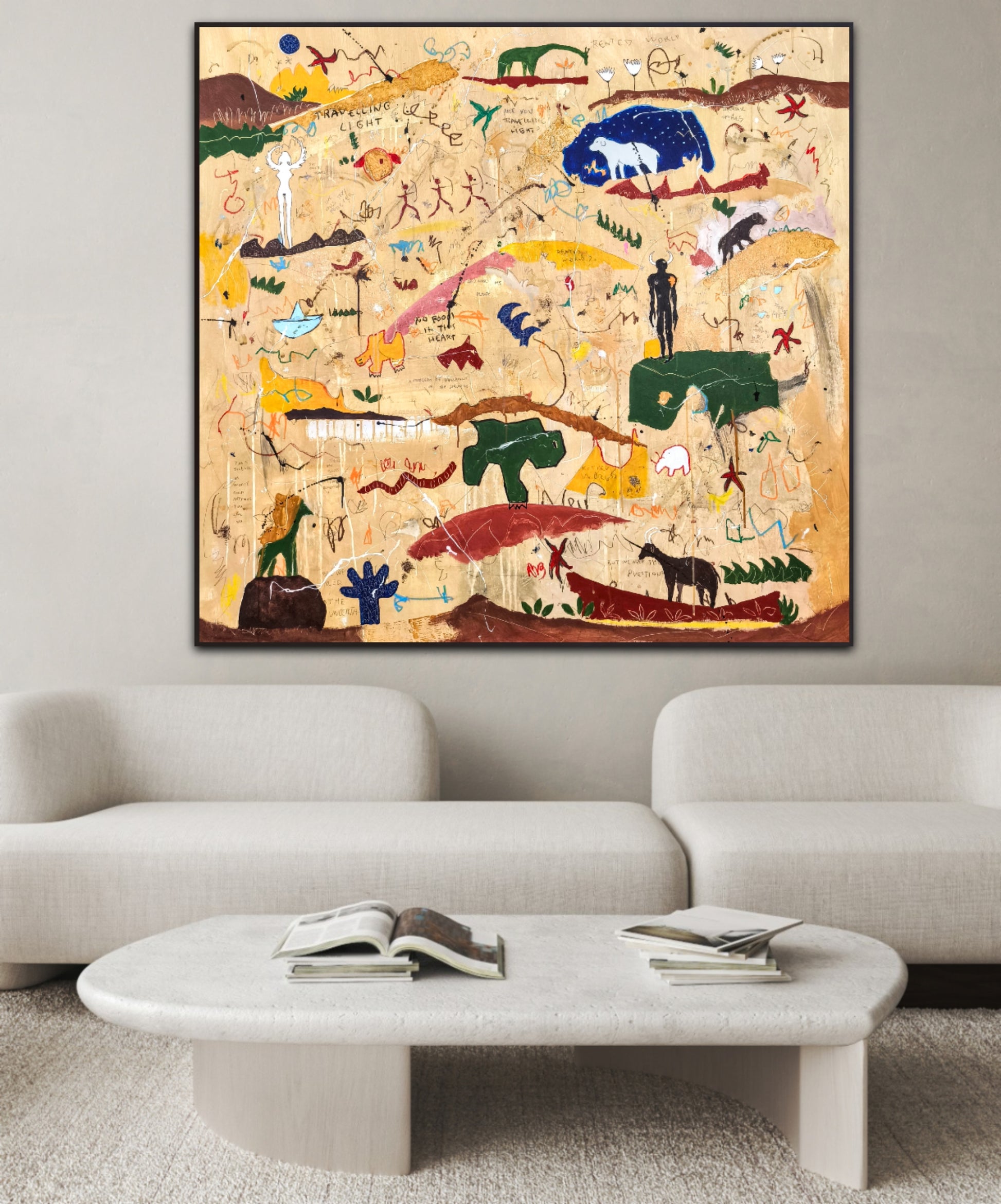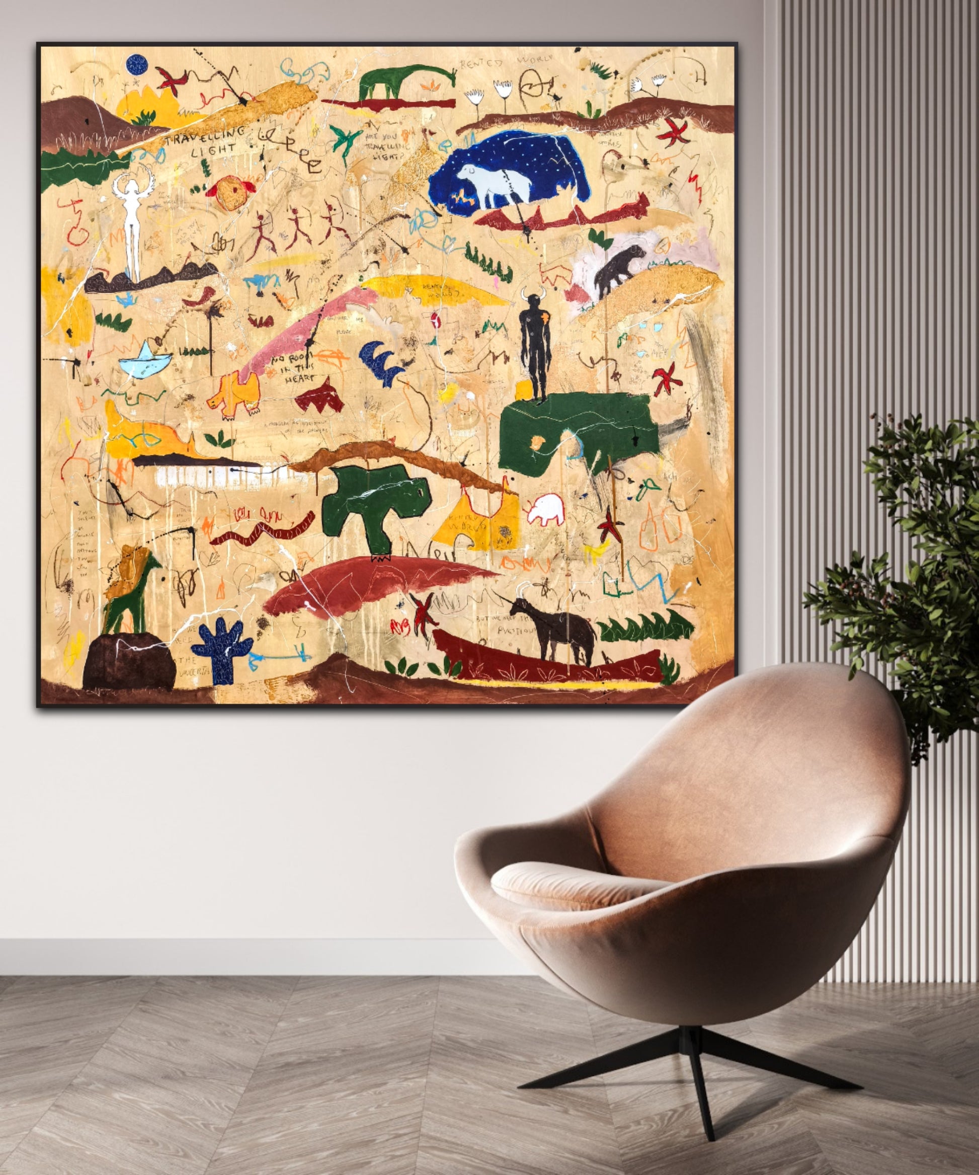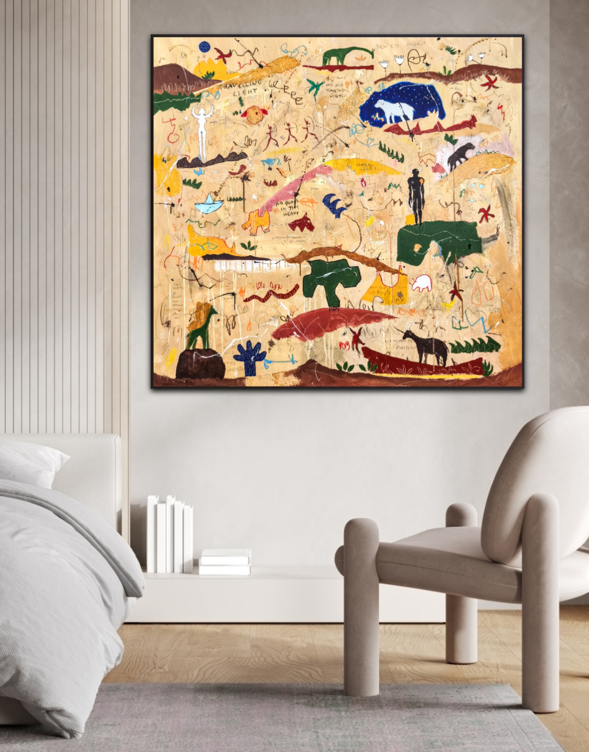 Técnica: acrílico, pigmentos, lápiz, ceras, carboncillo, tinta china y gesso.