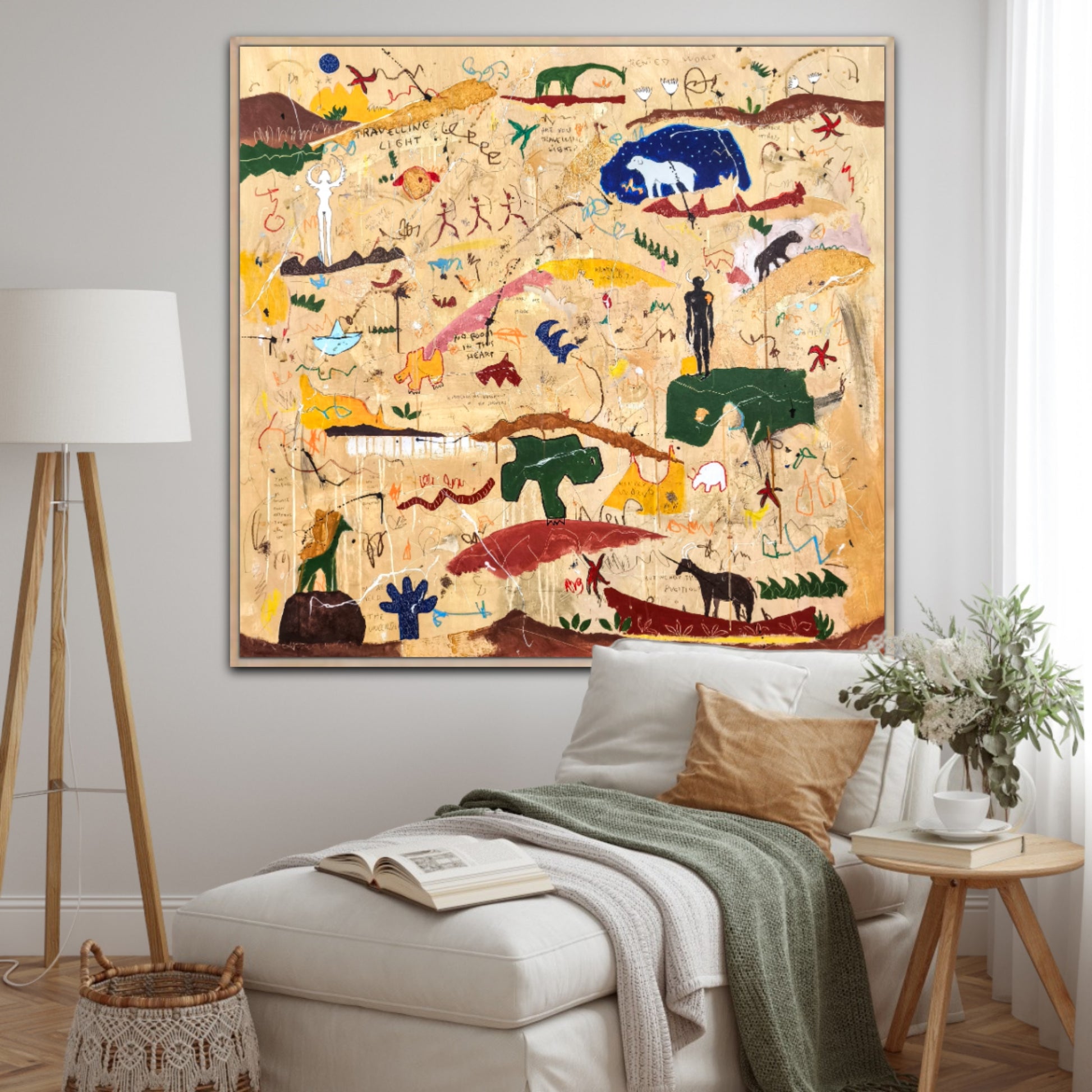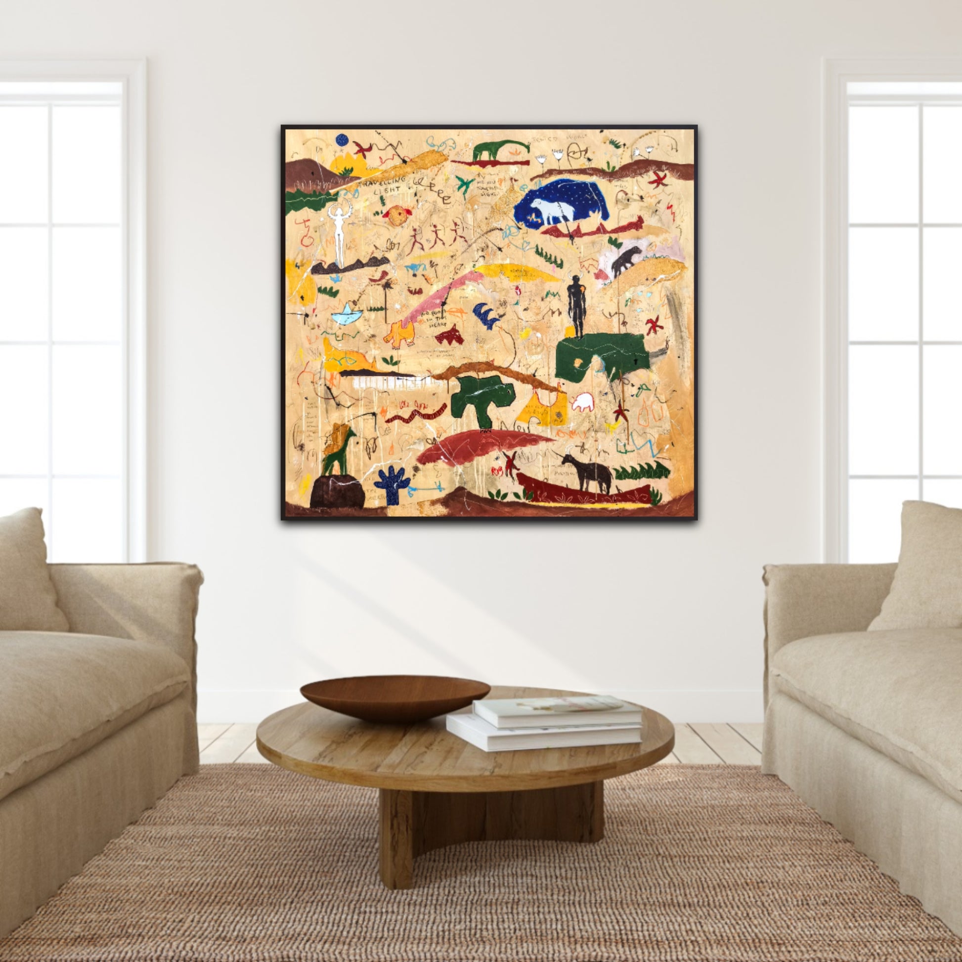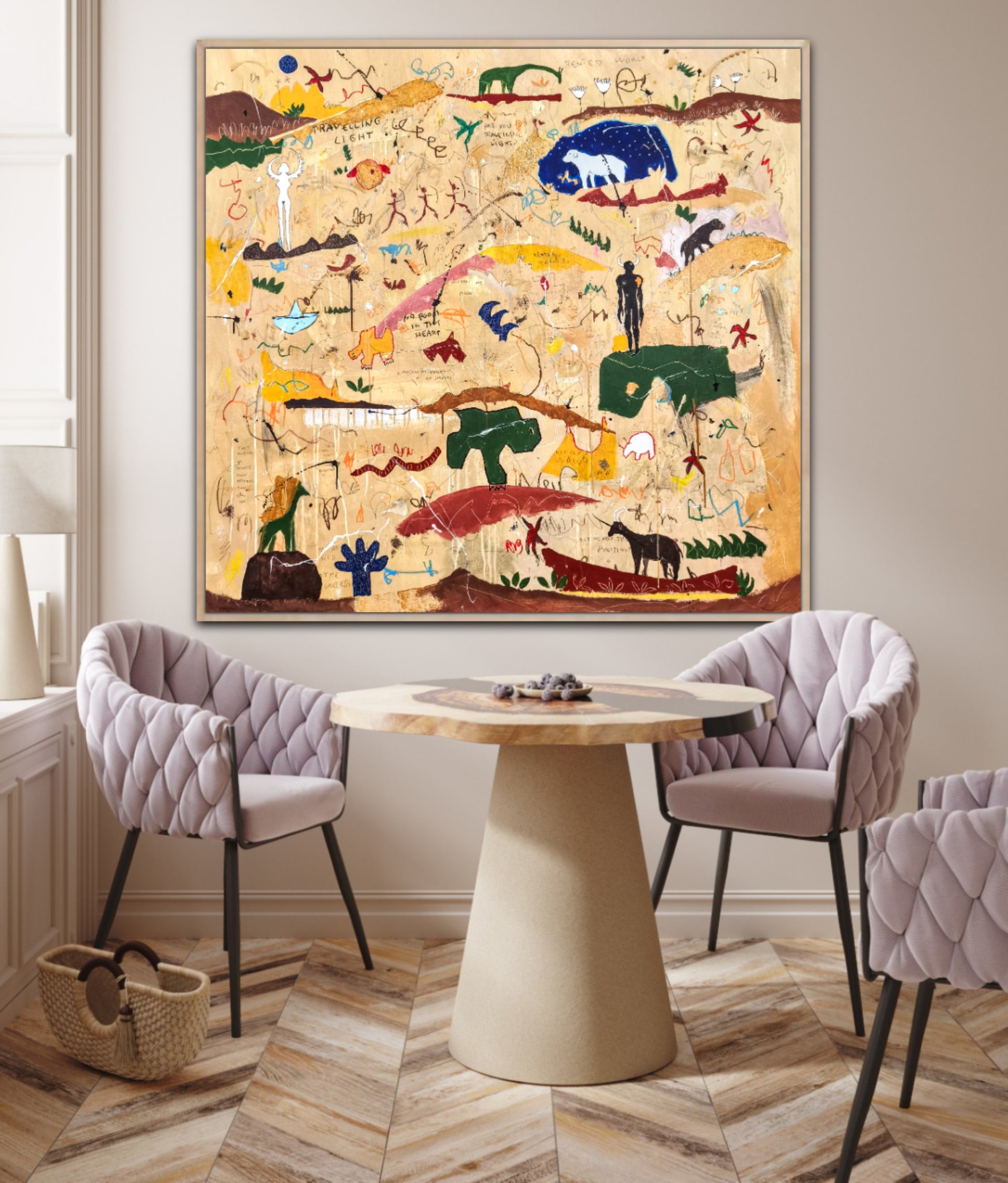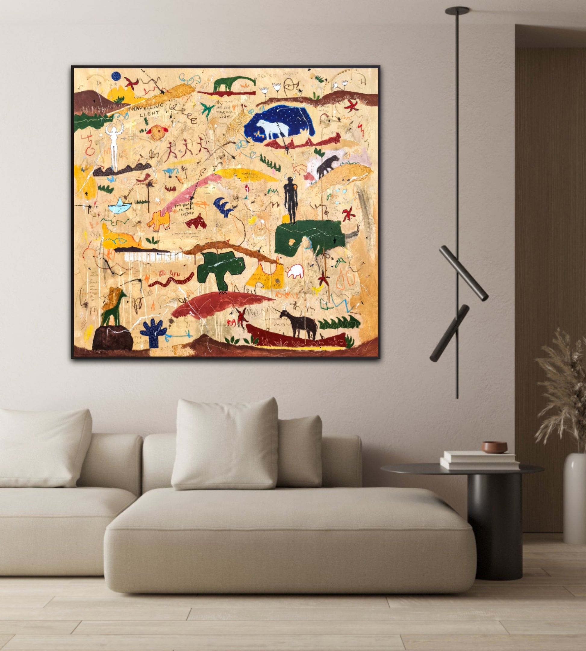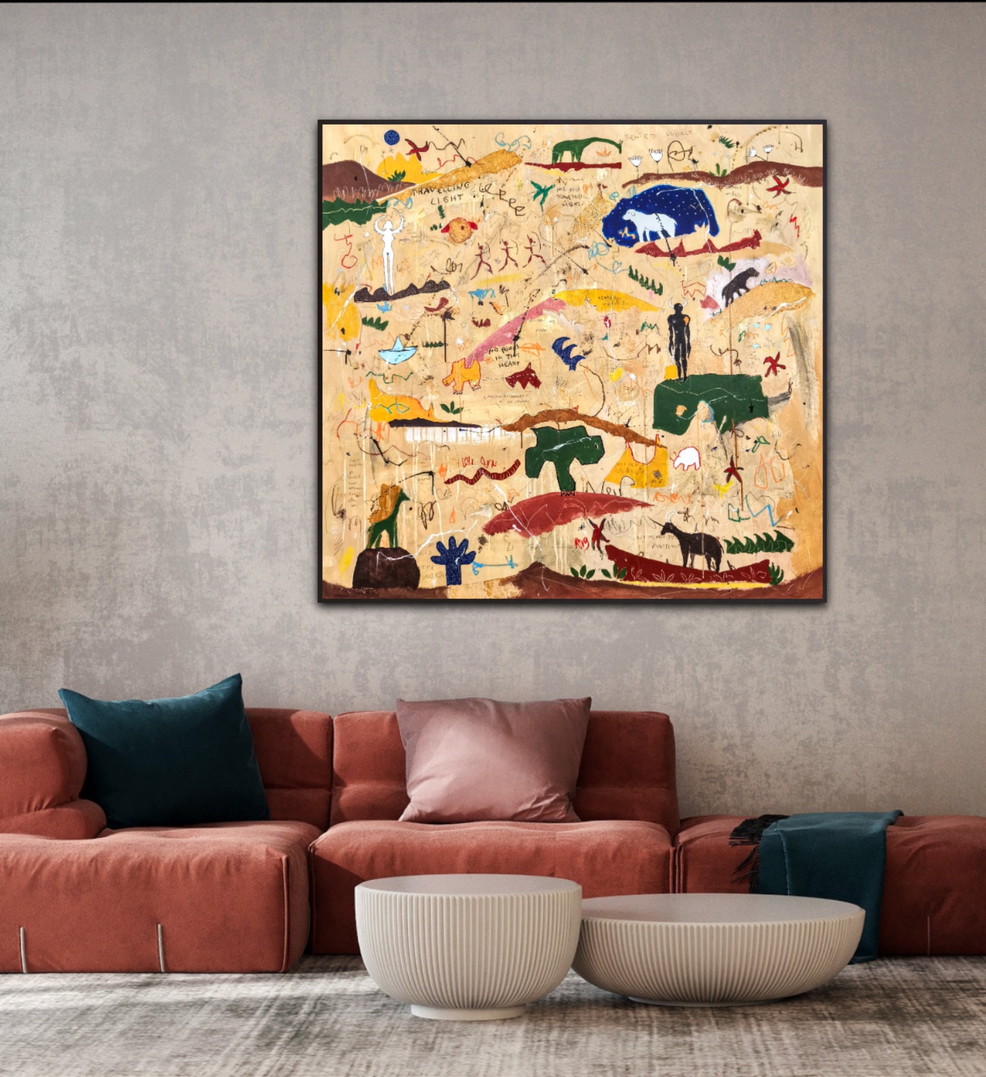 Técnica: acrílico, pigmentos, lápiz, ceras, carboncillo, tinta china y gesso.