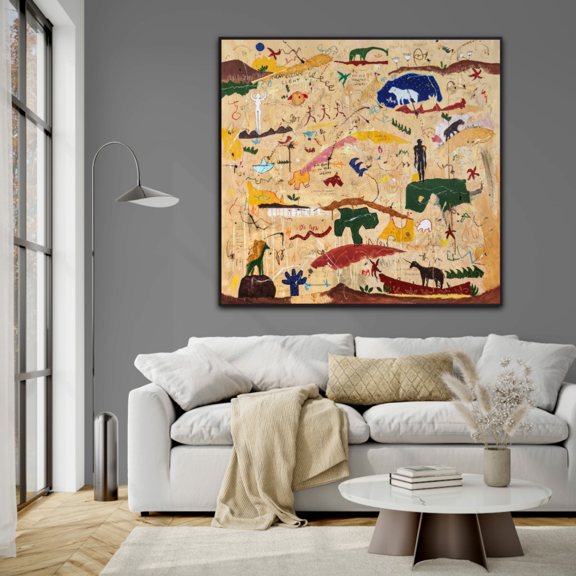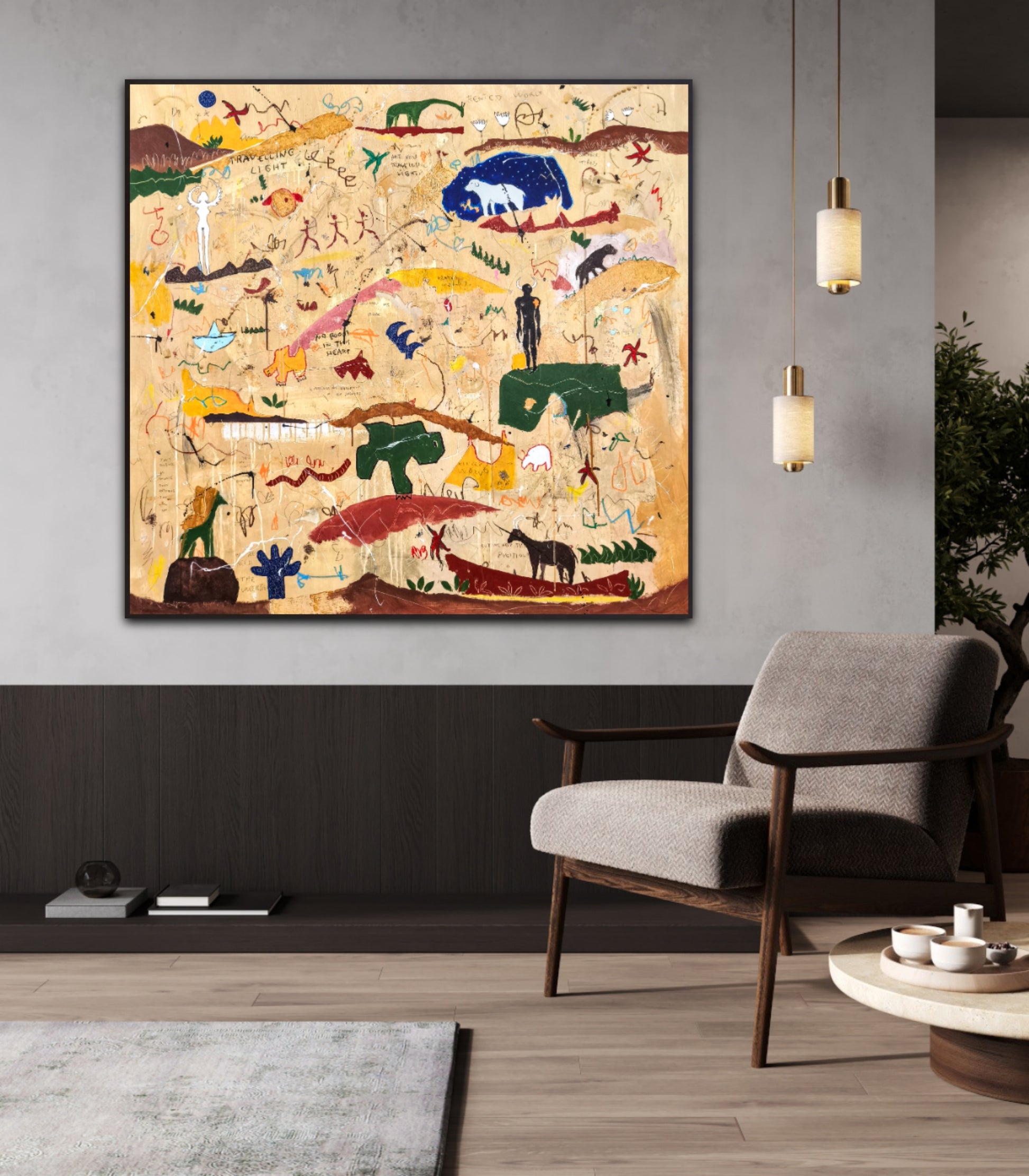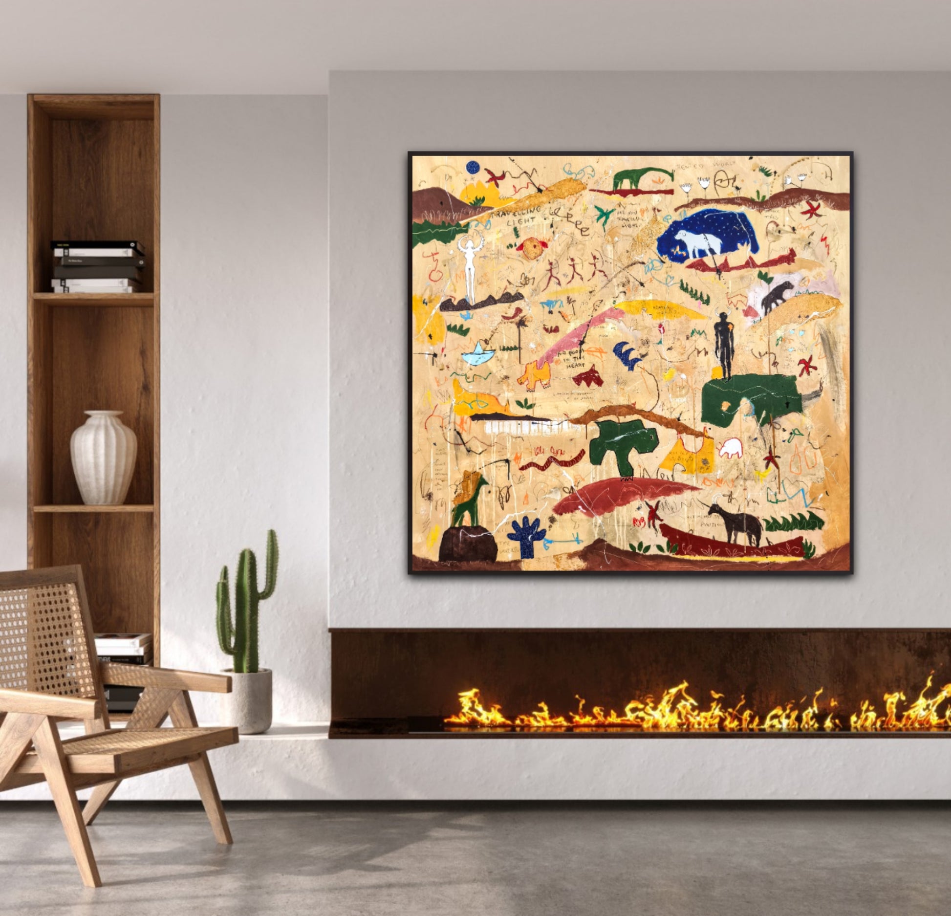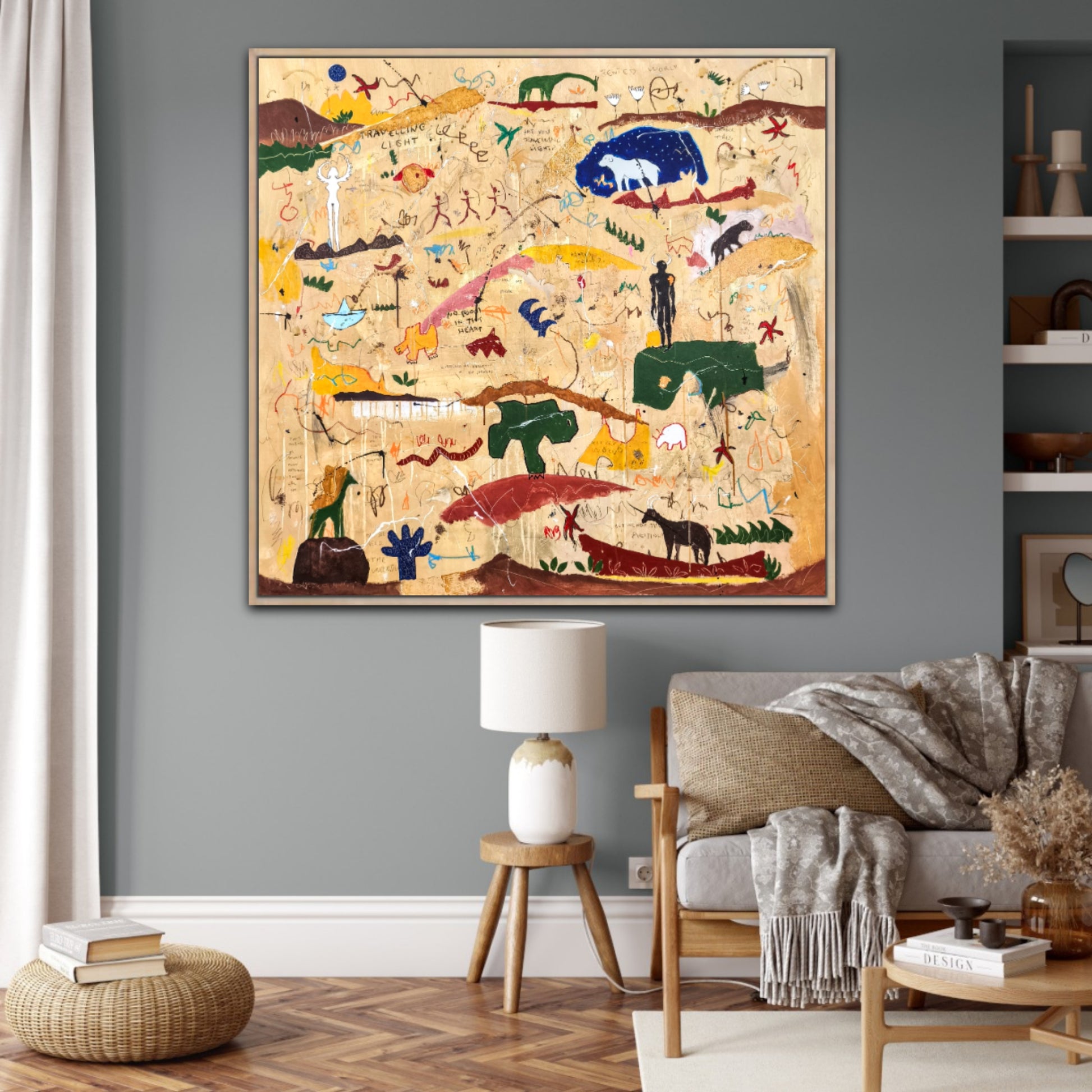 Técnica: acrílico, pigmentos, lápiz, ceras, carboncillo, tinta china y gesso.