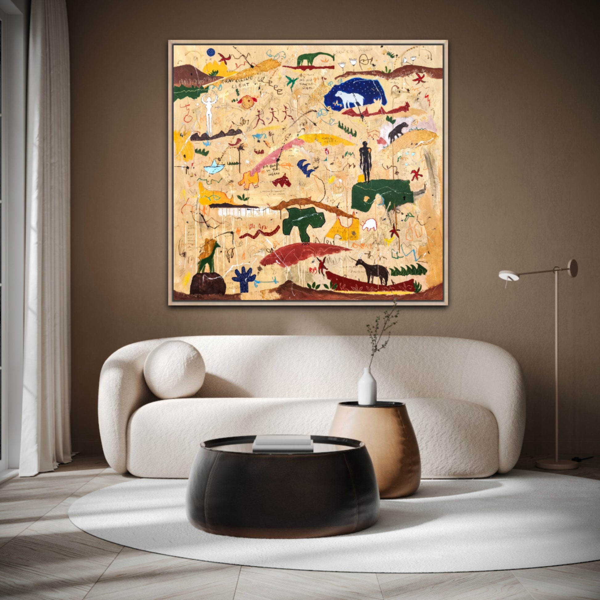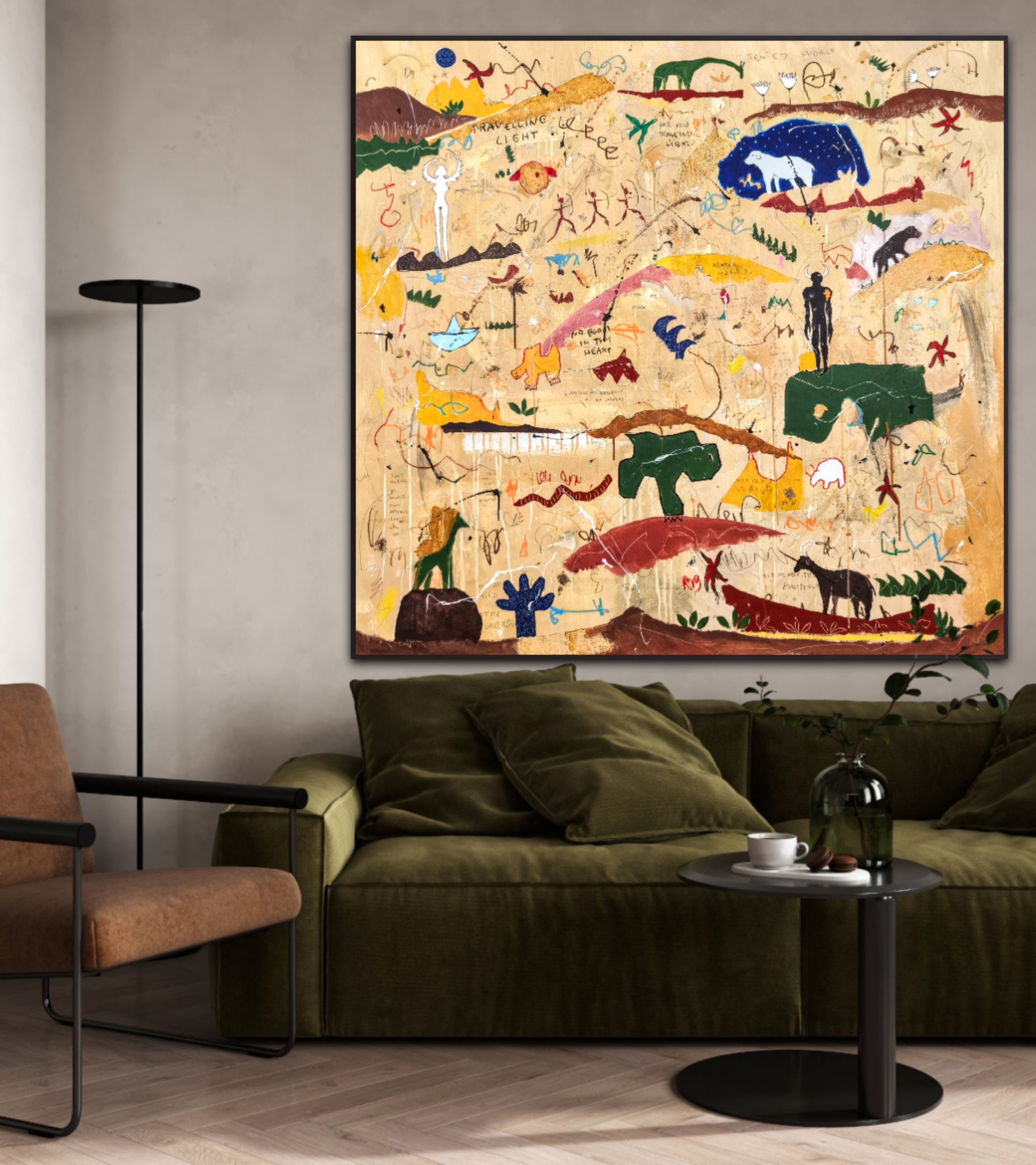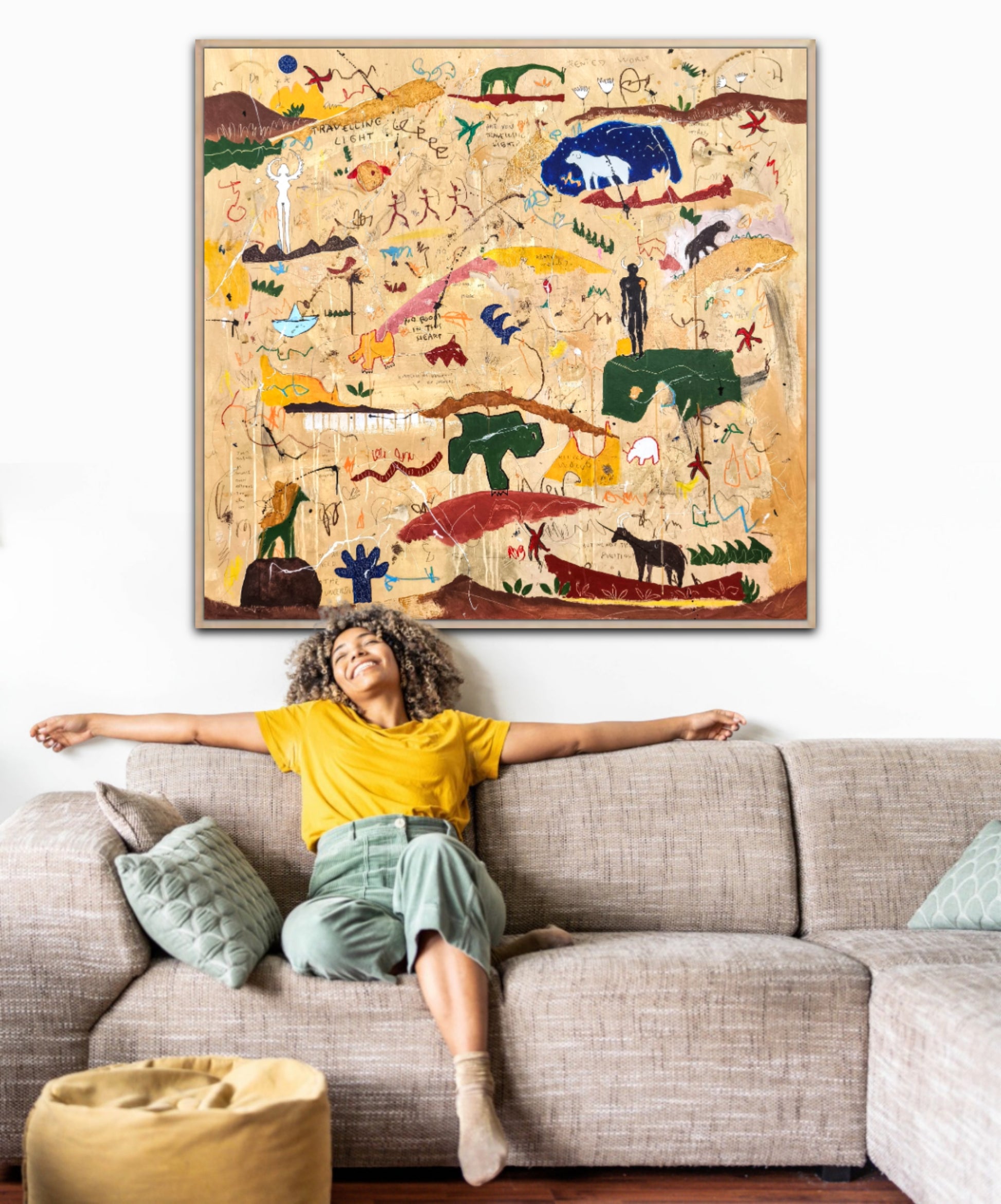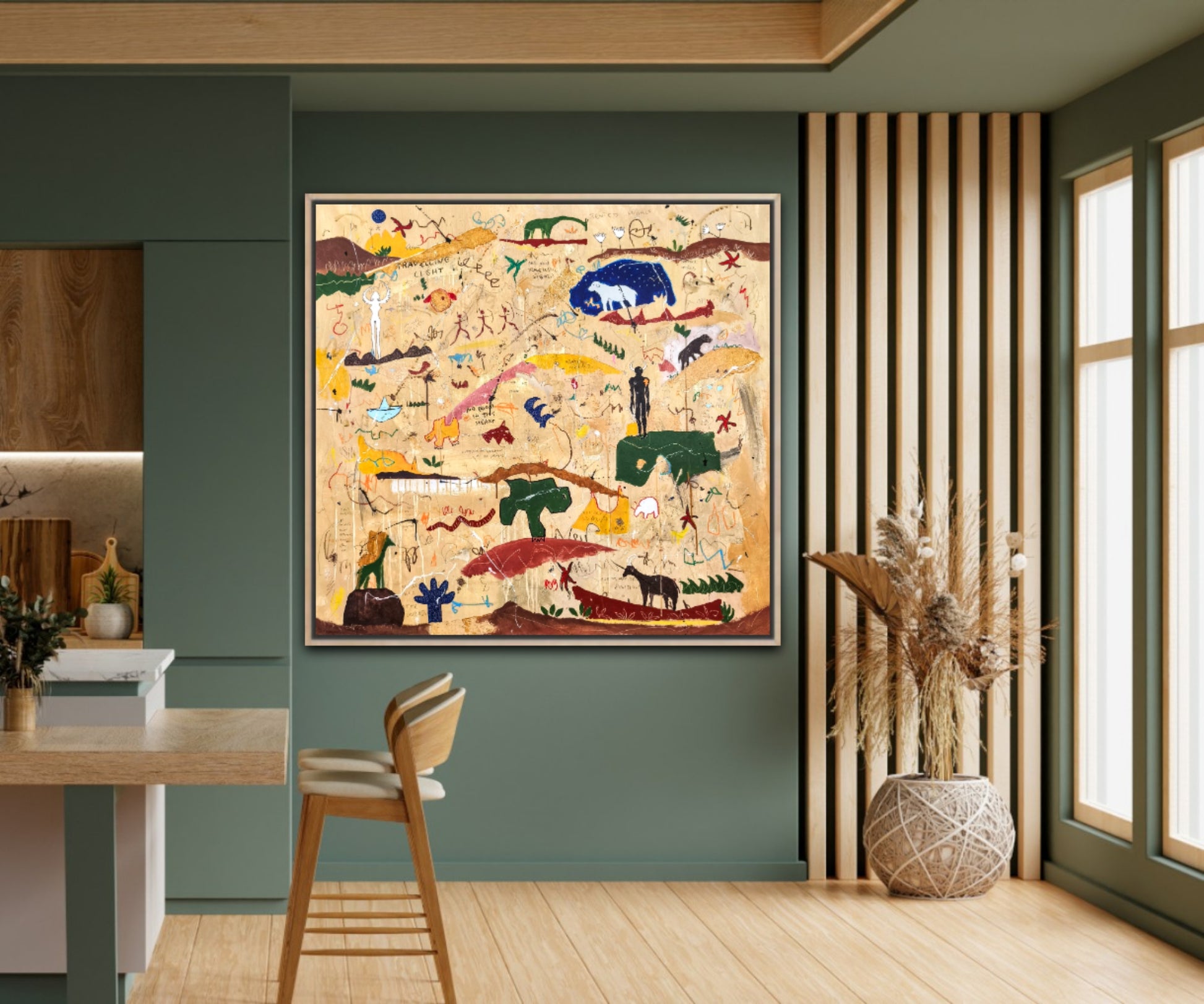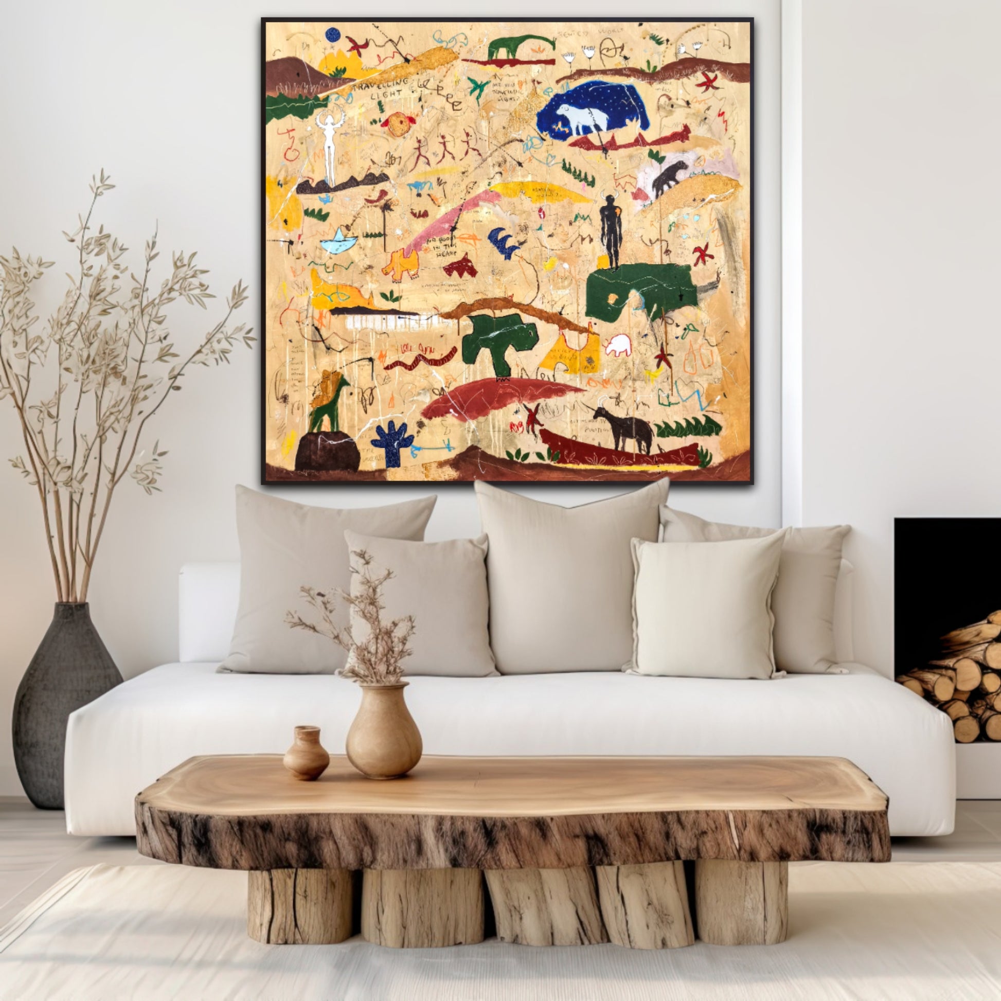 Técnica: acrílico, pigmentos, lápiz, ceras, carboncillo, tinta china y gesso.