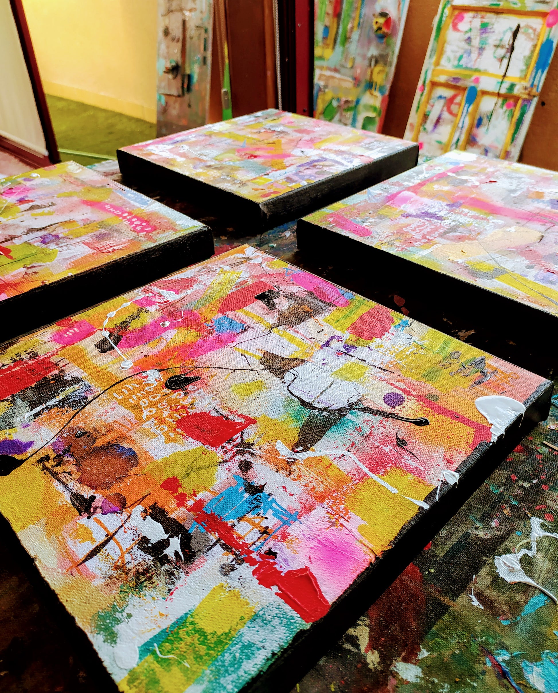 Cuadro trabajado desde la improvisación libre. Action painting con hip hop español