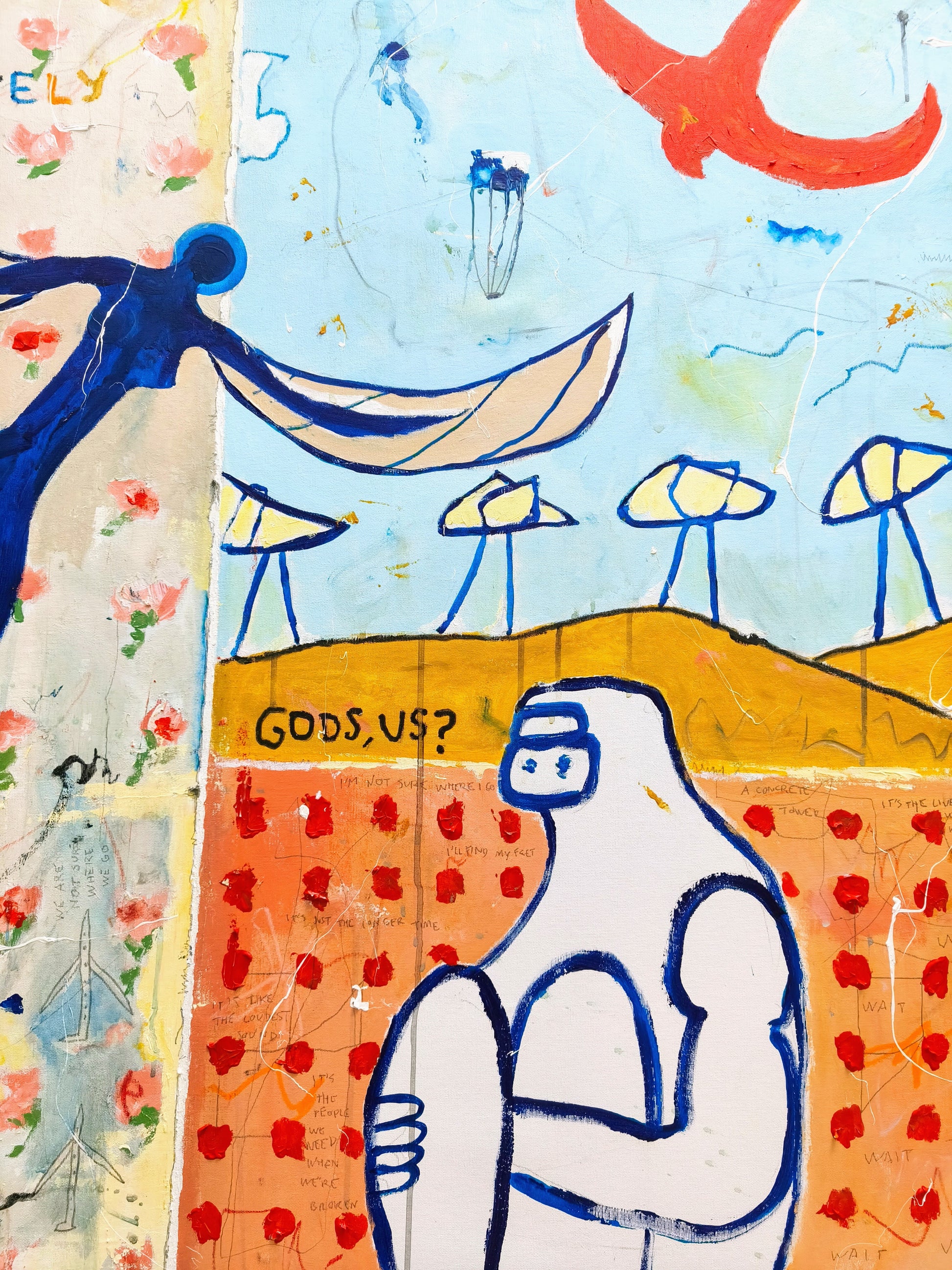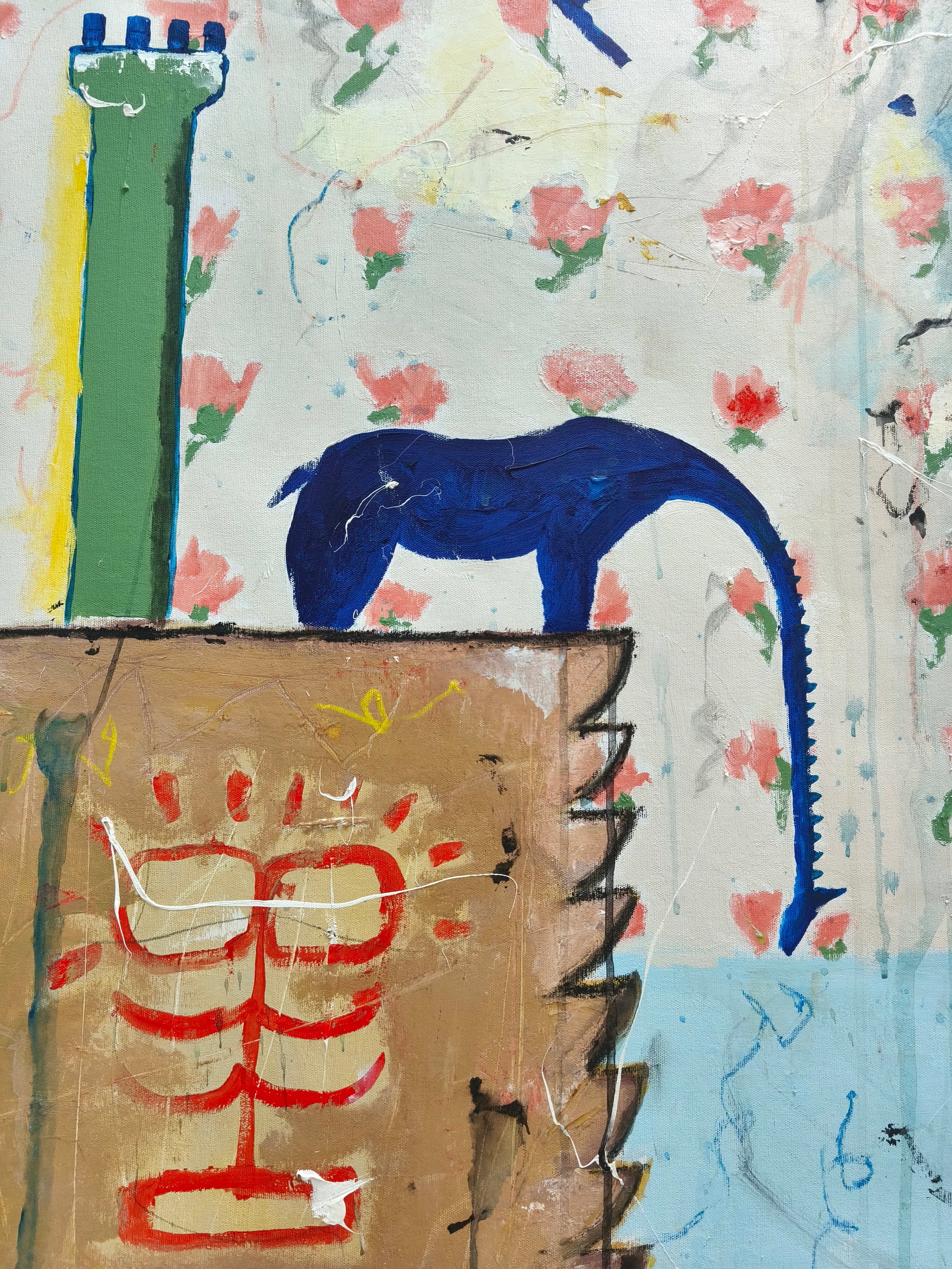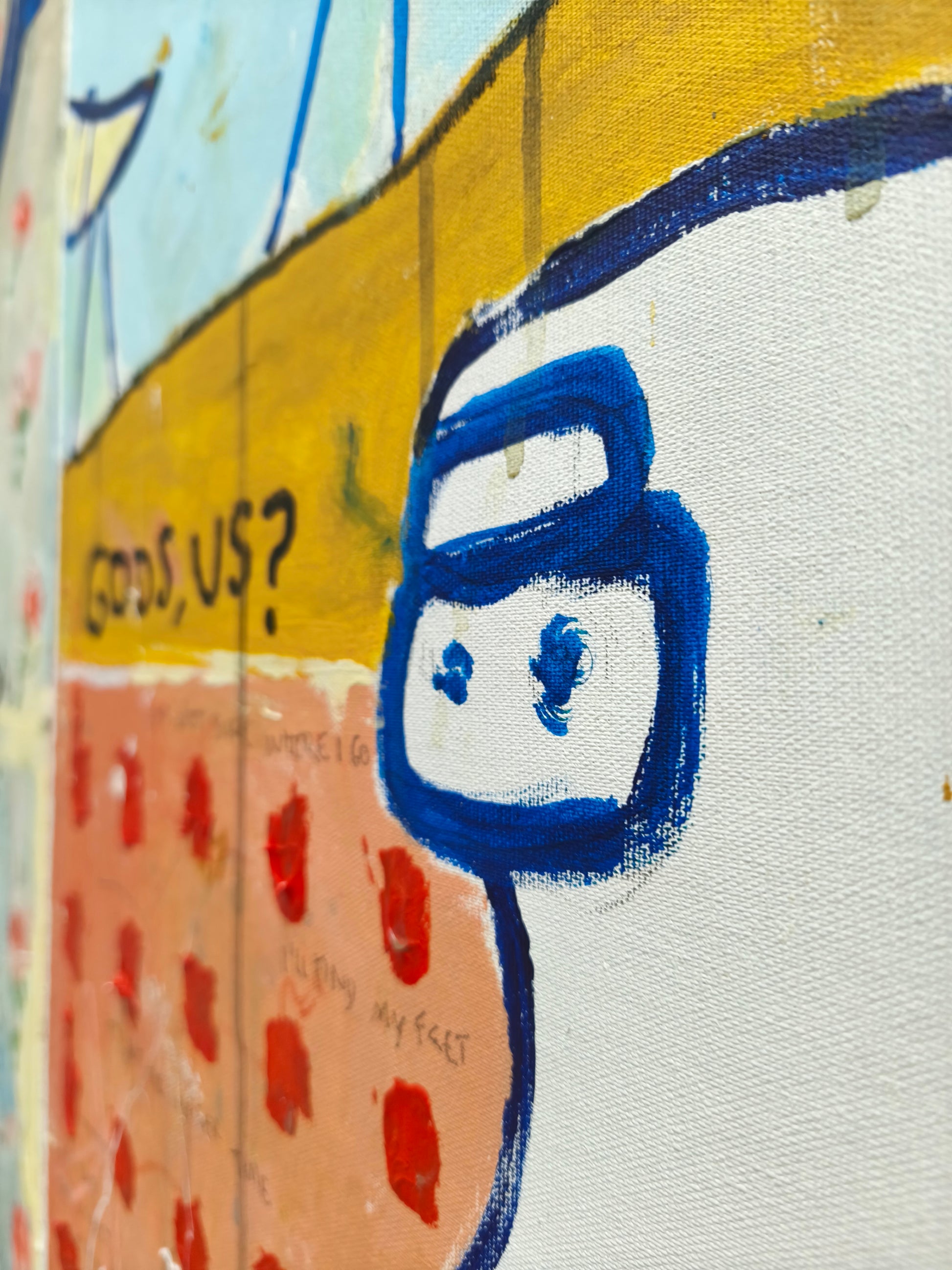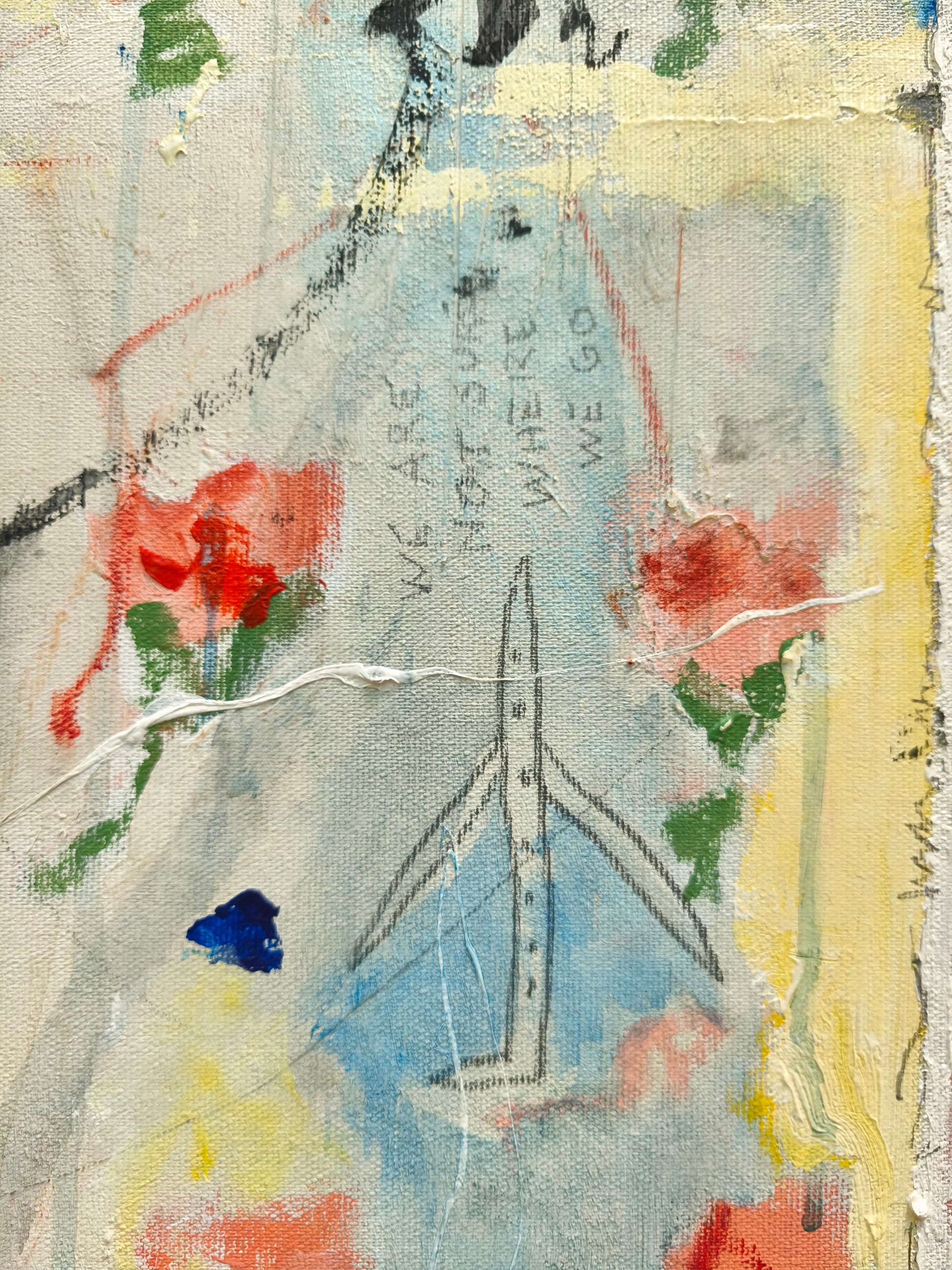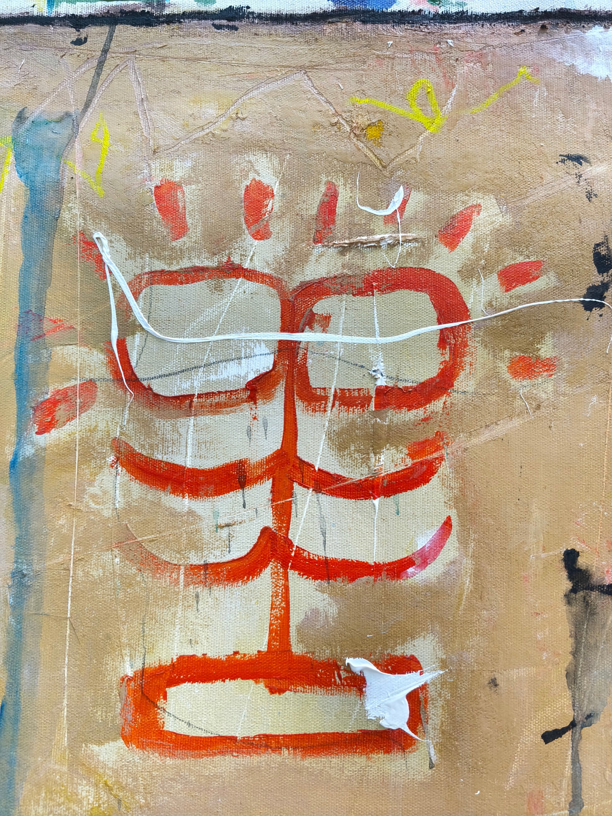 Técnica: acrílico, pigmentos, lápiz, carboncillo, gesso, stick oil.