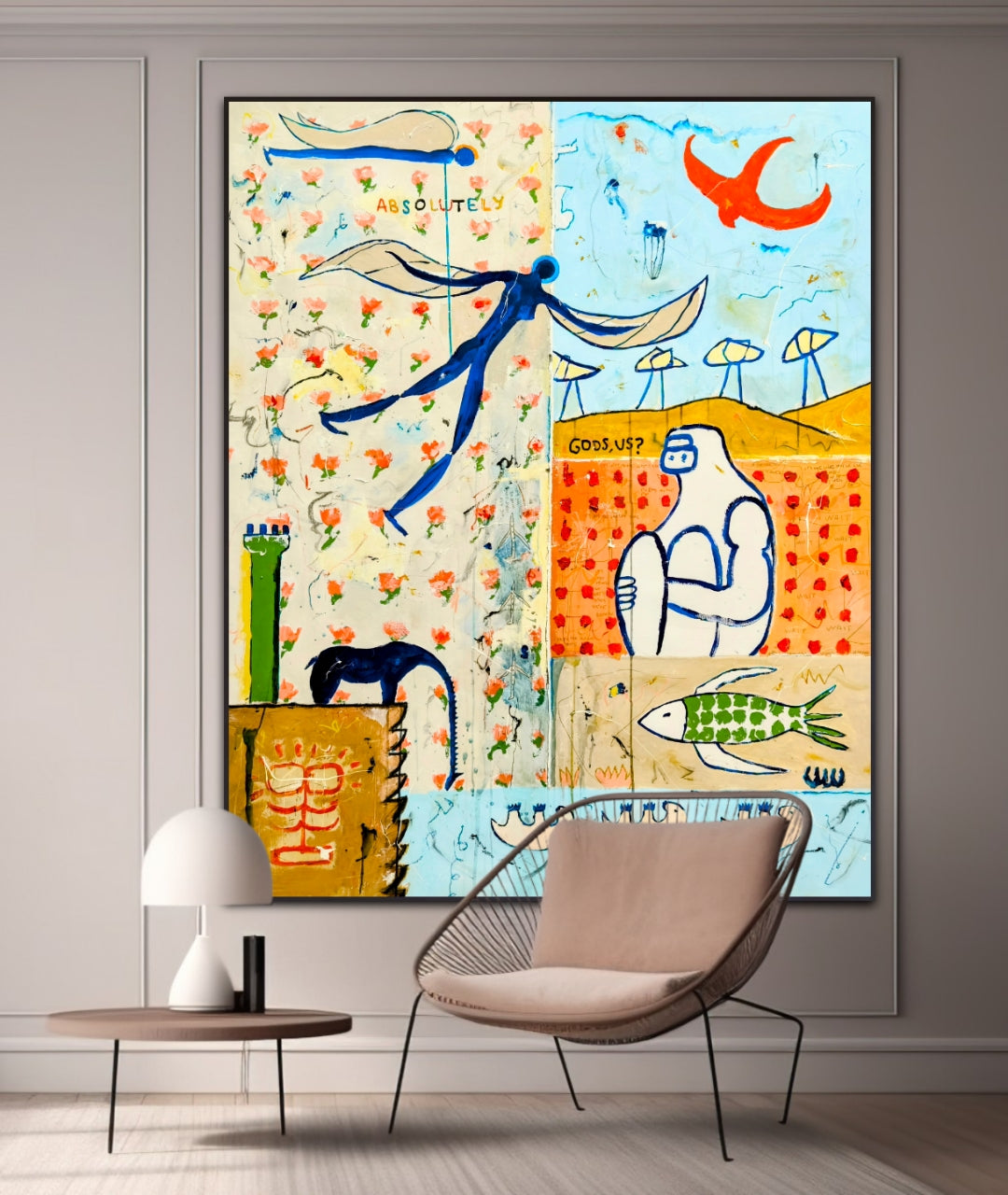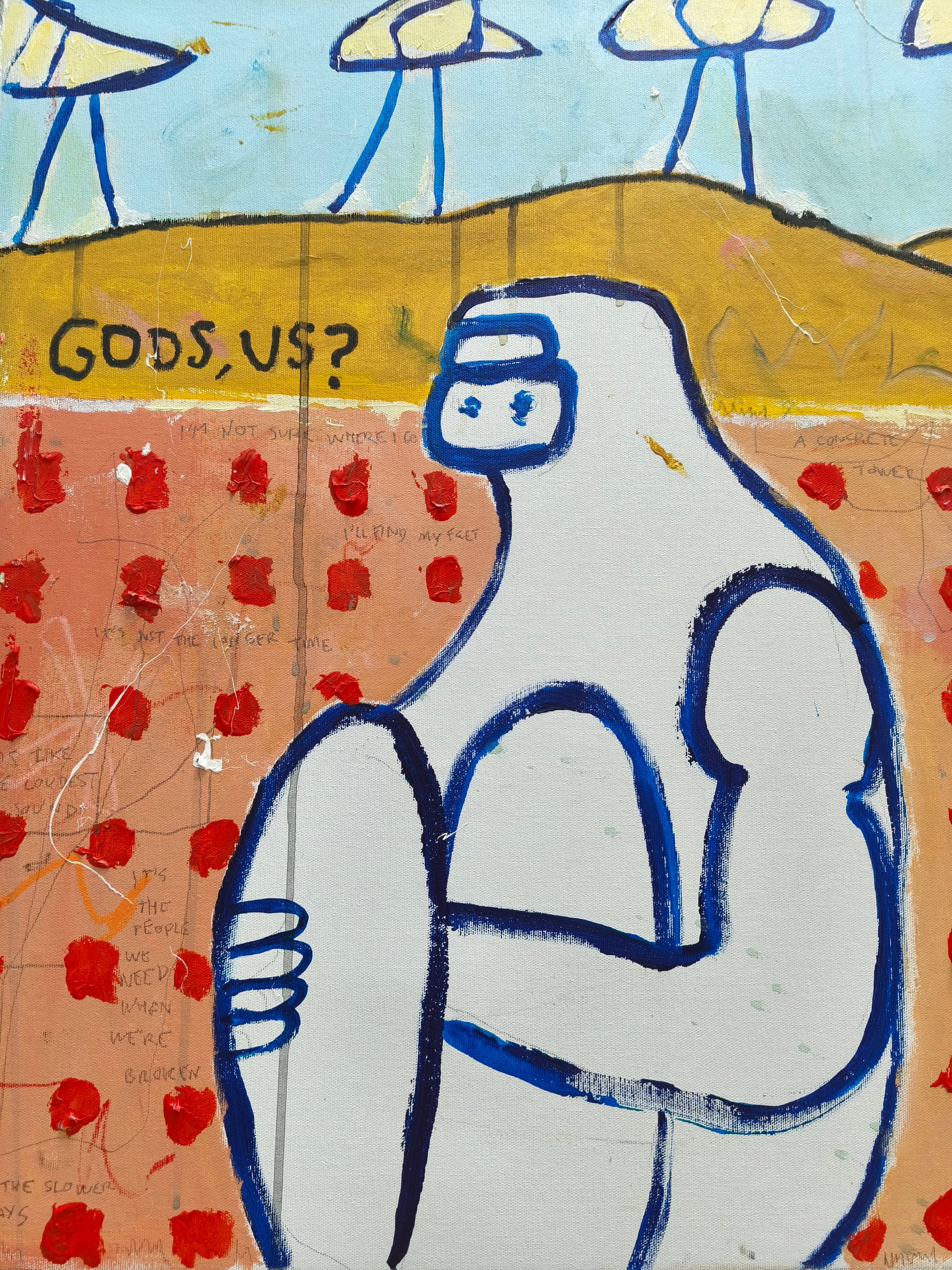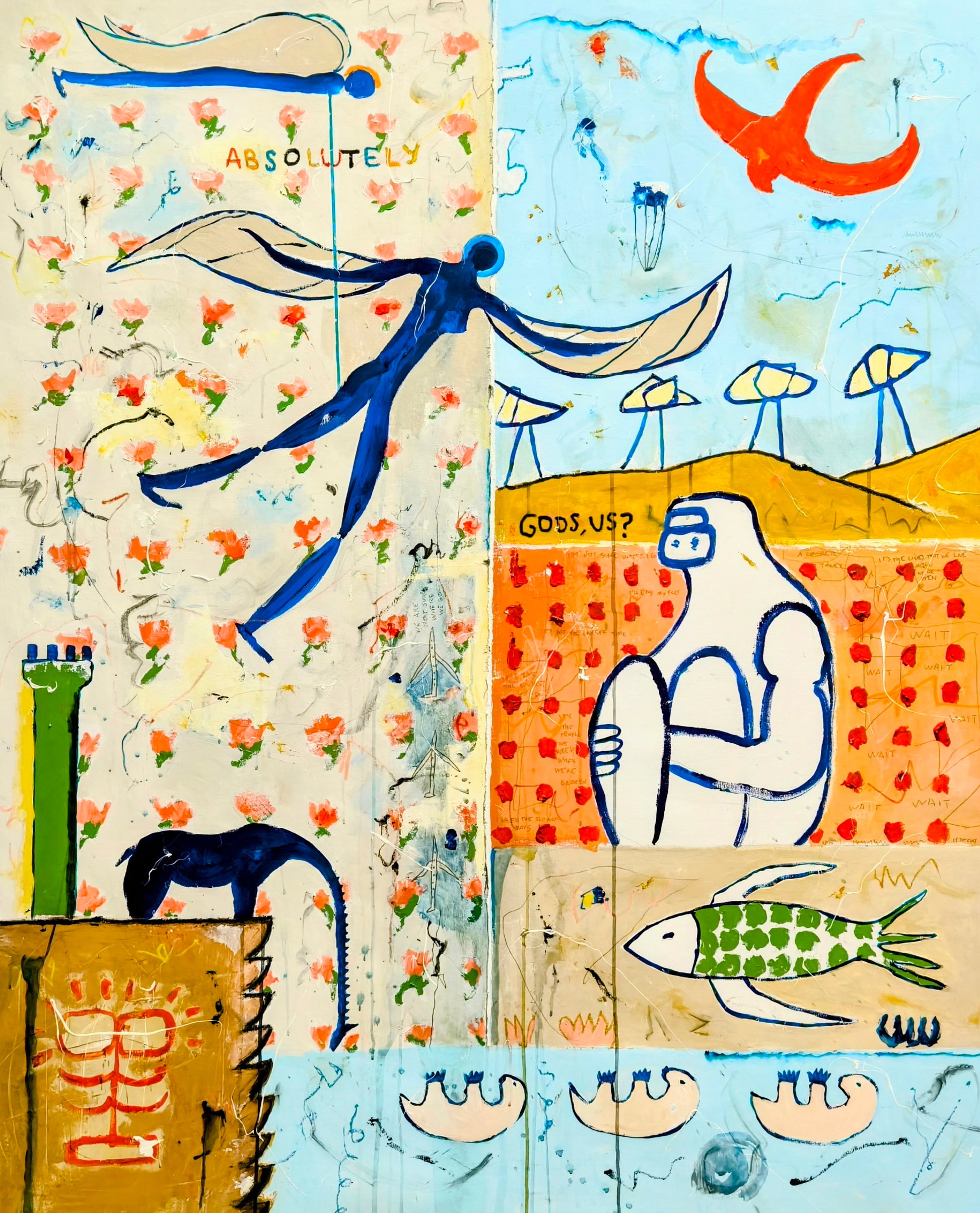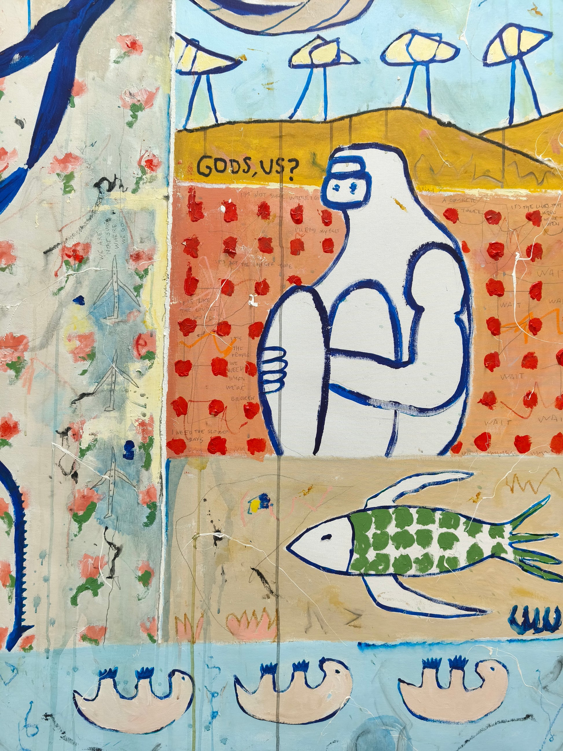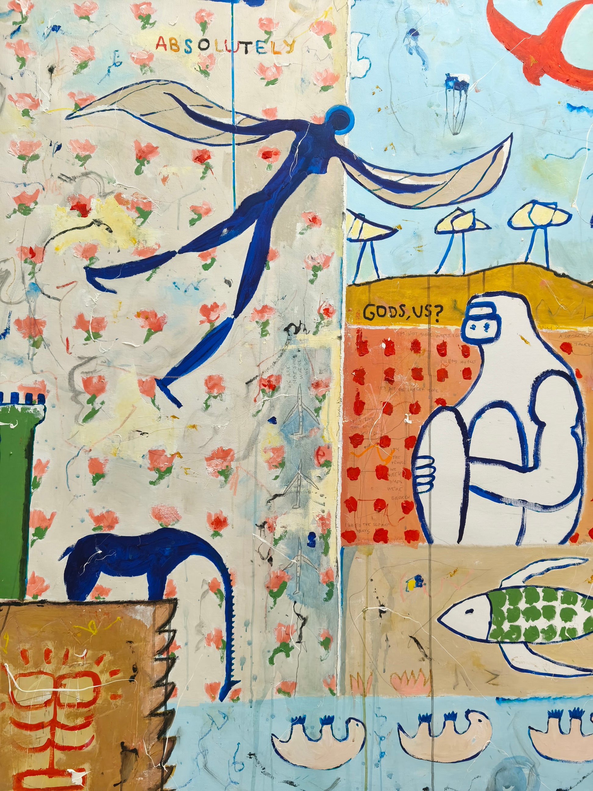 Técnica: acrílico, pigmentos, lápiz, carboncillo, gesso, stick oil.