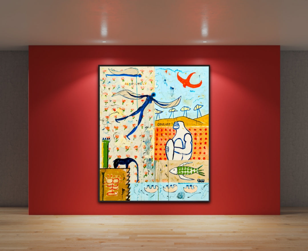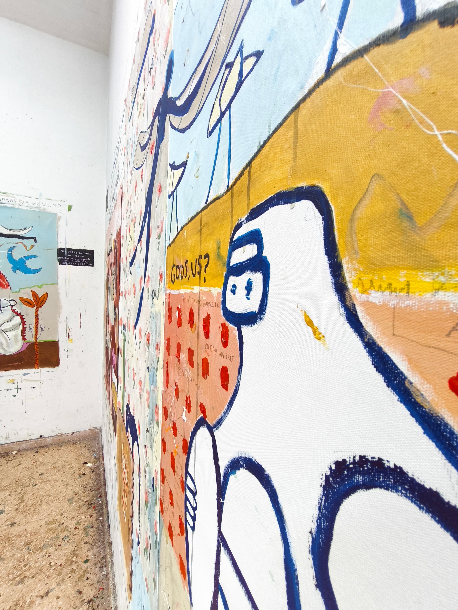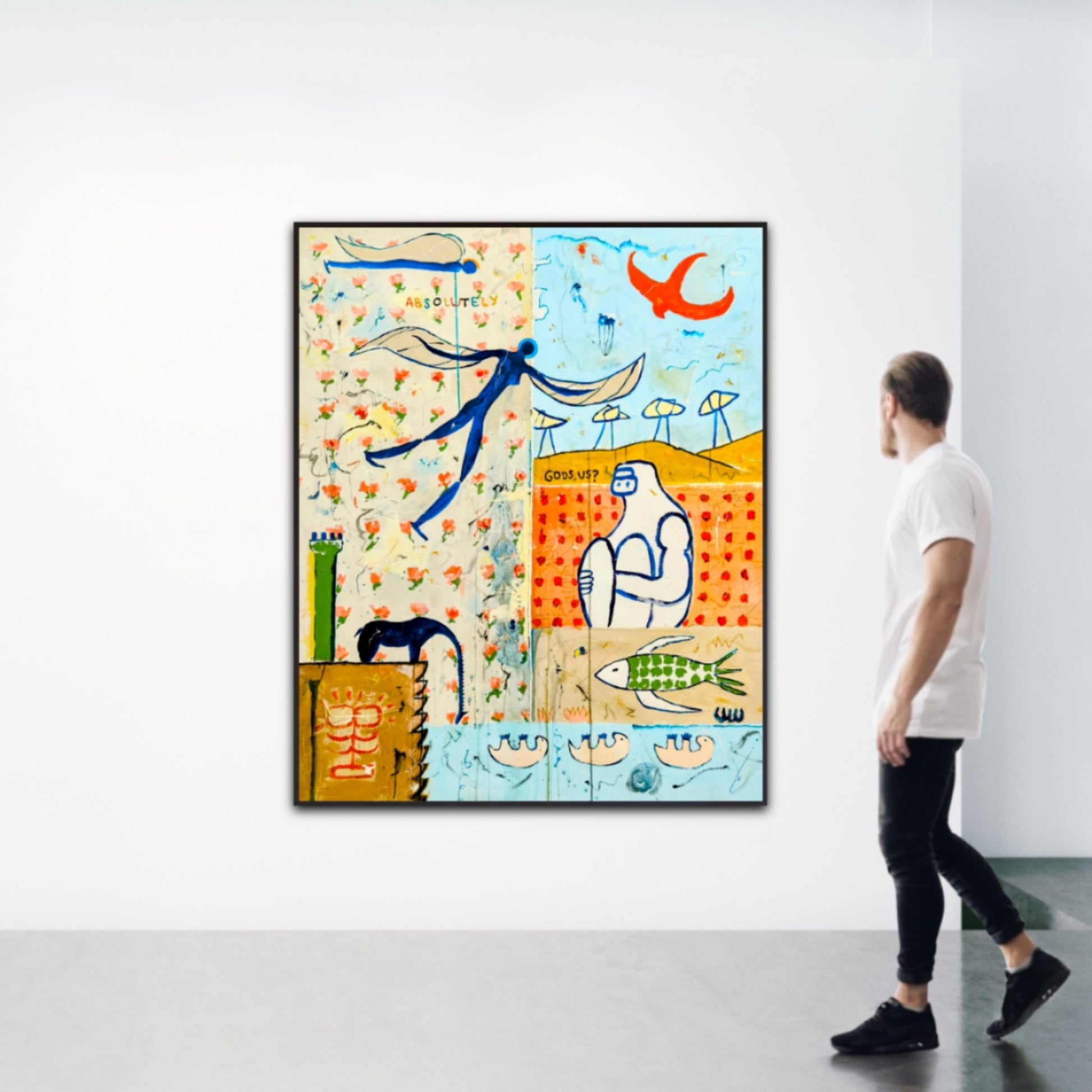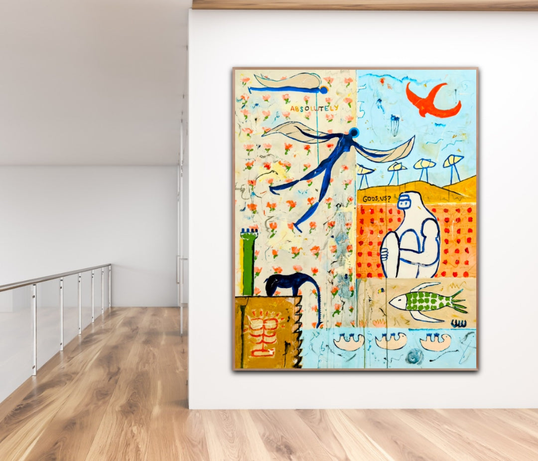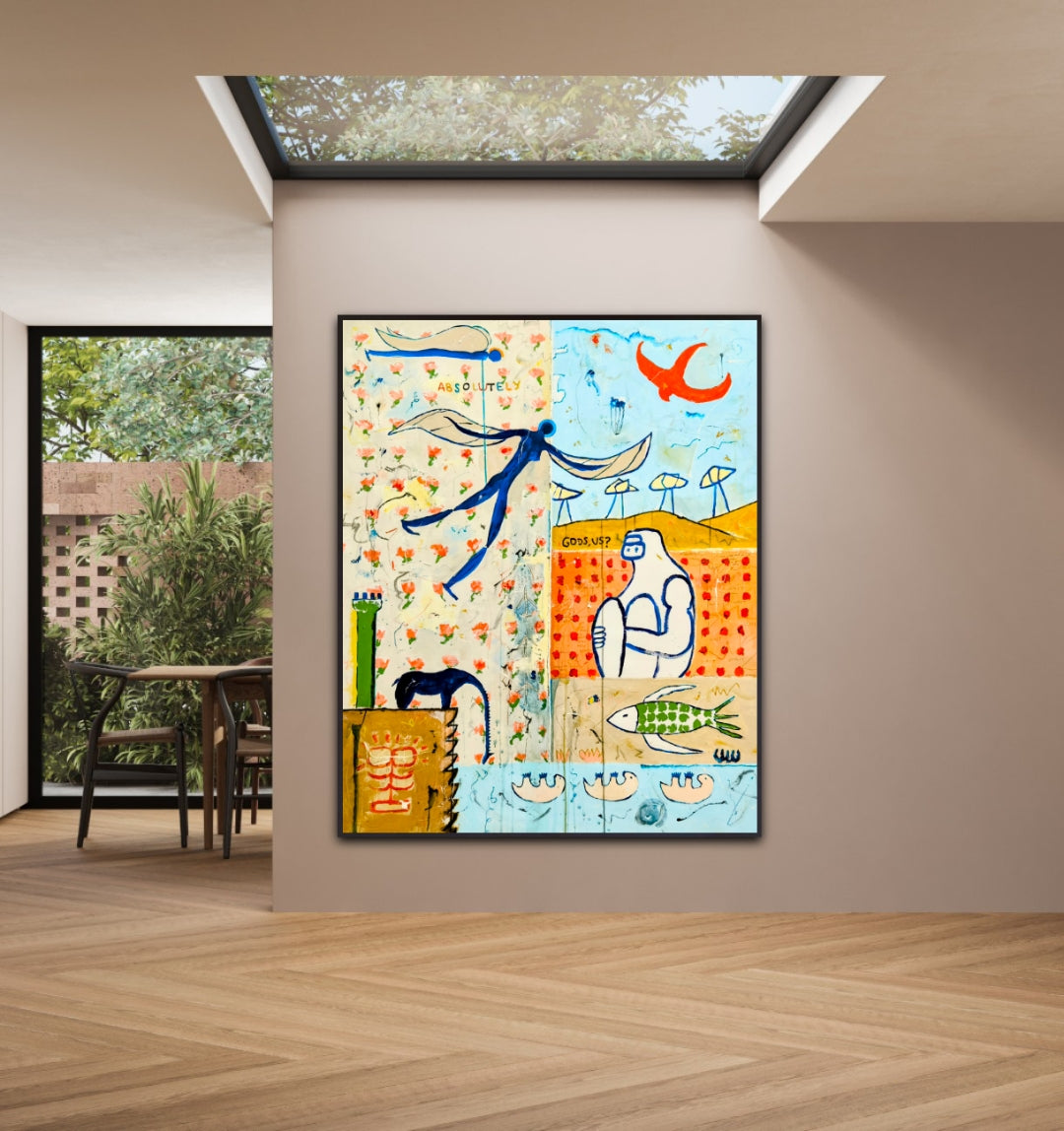Técnica: acrílico, pigmentos, lápiz, carboncillo, gesso, stick oil.