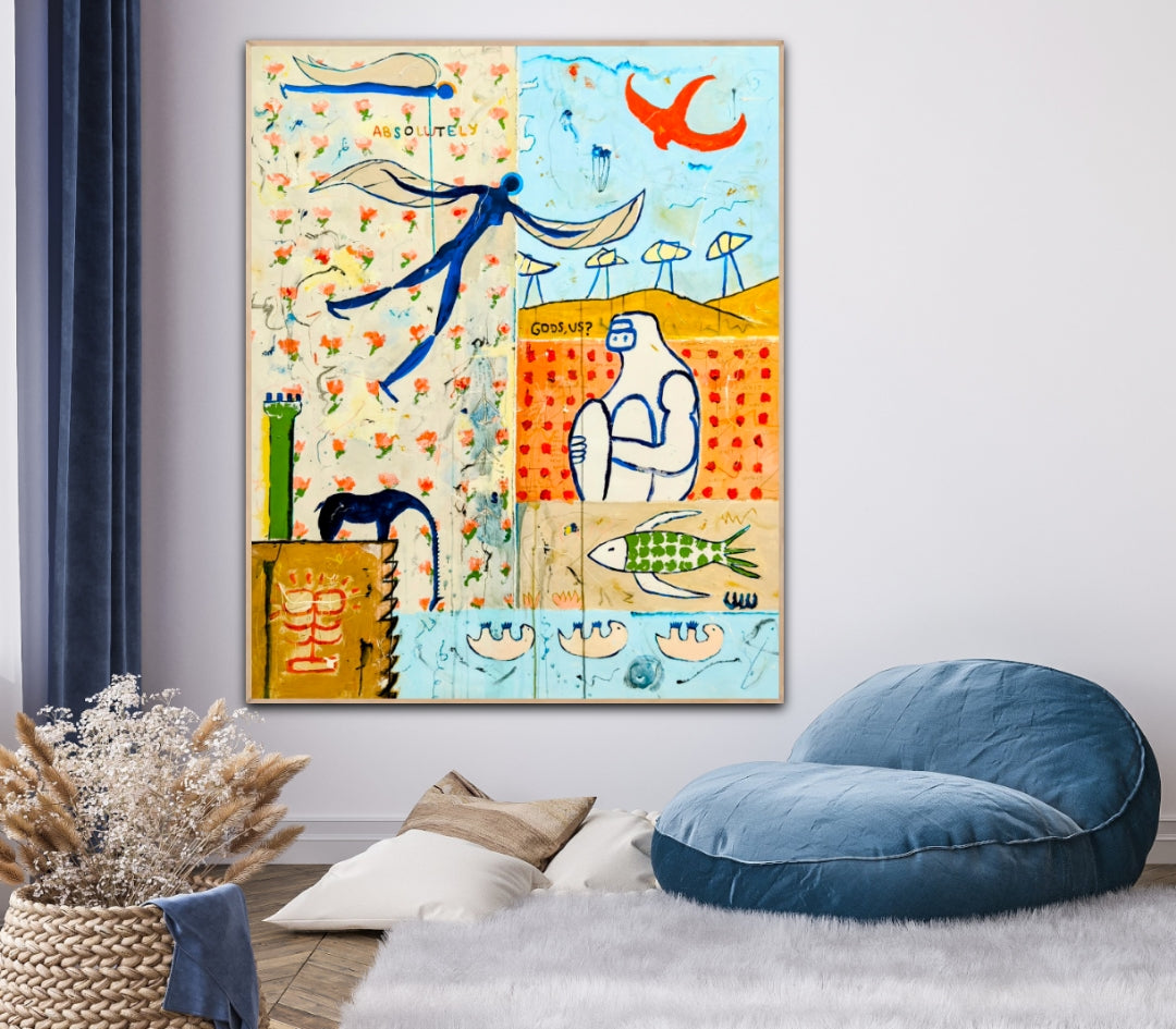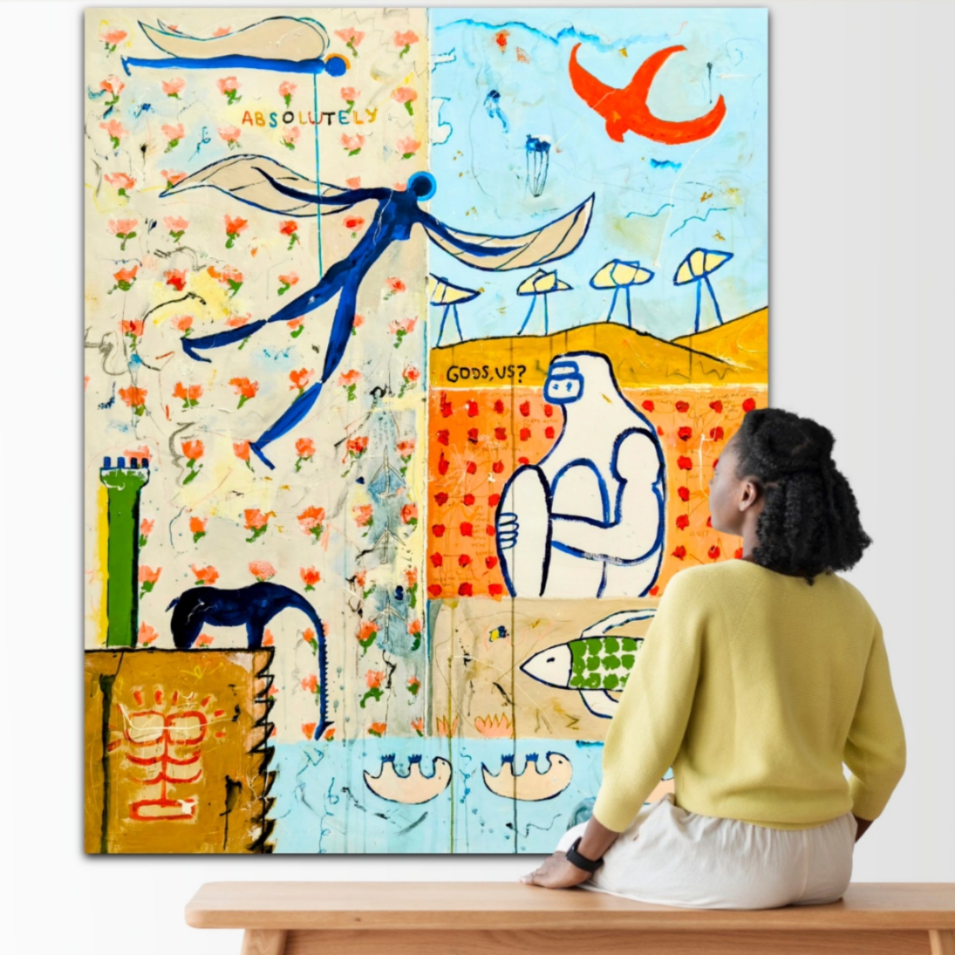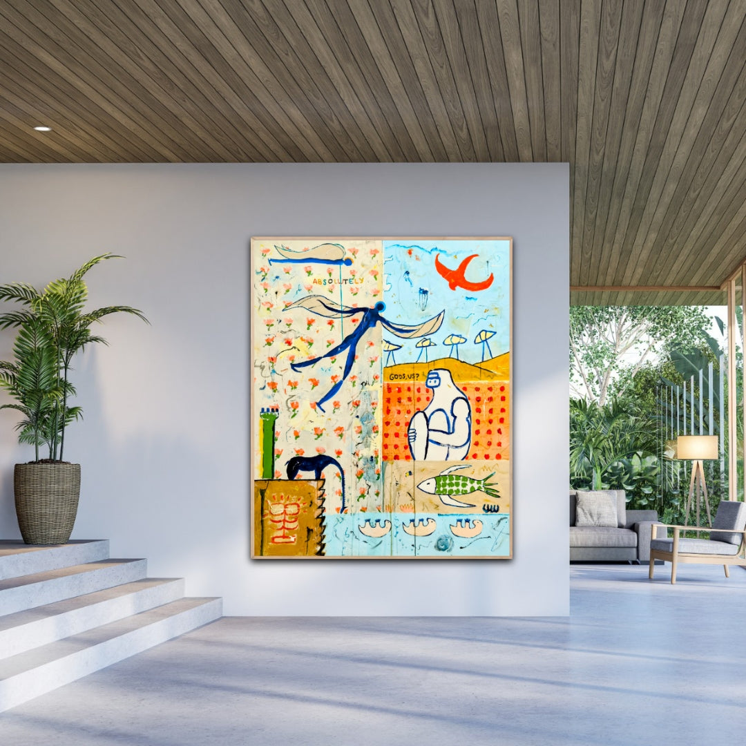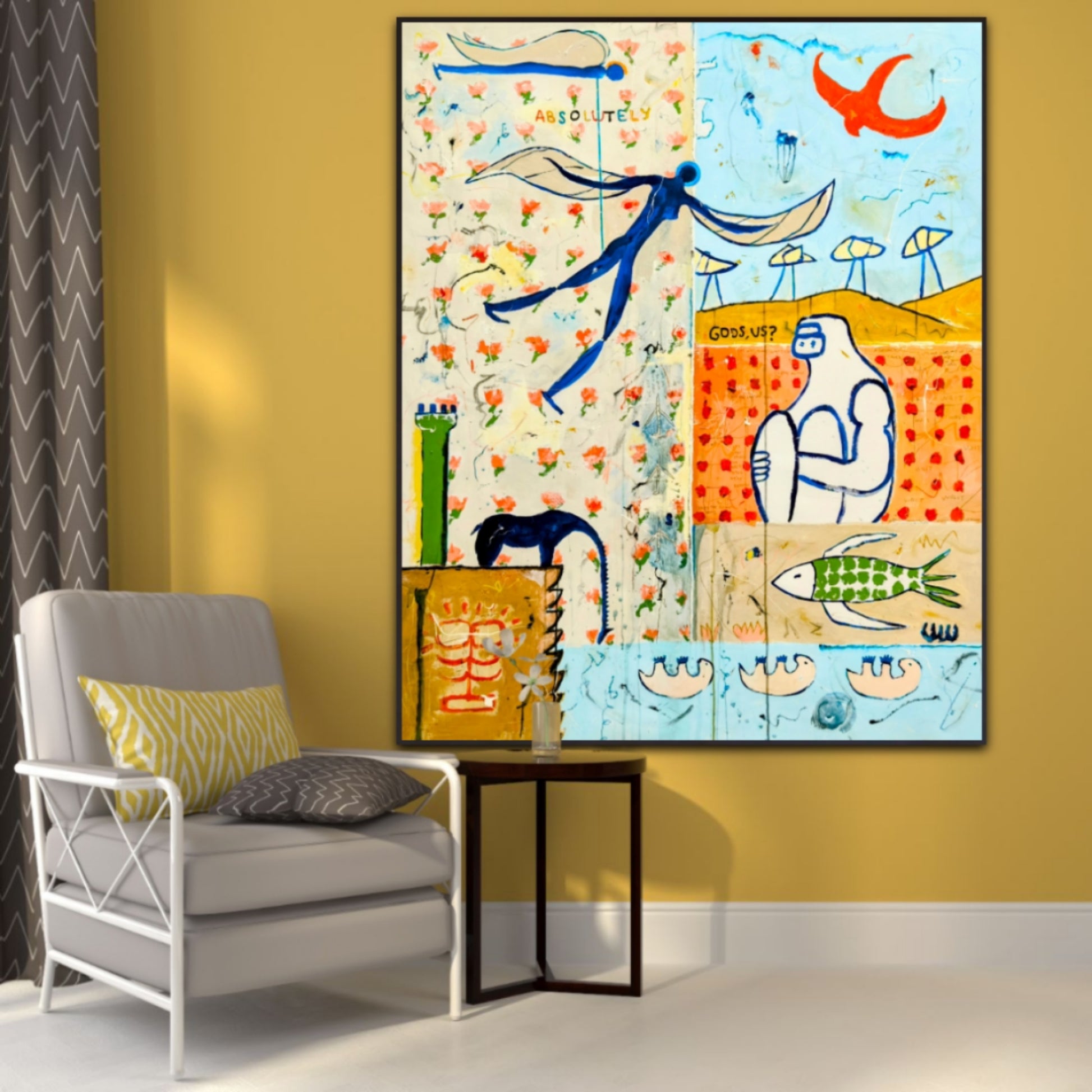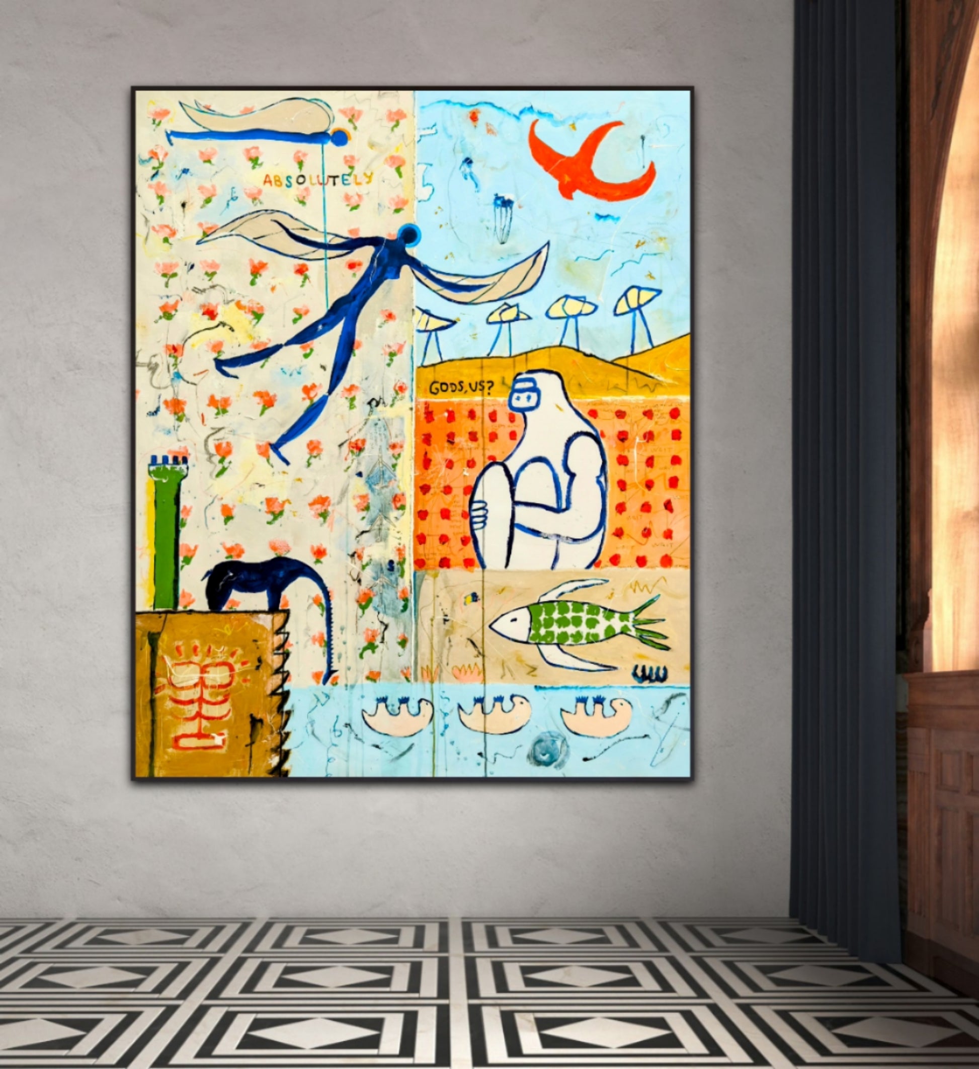 Técnica: acrílico, pigmentos, lápiz, carboncillo, gesso, stick oil.