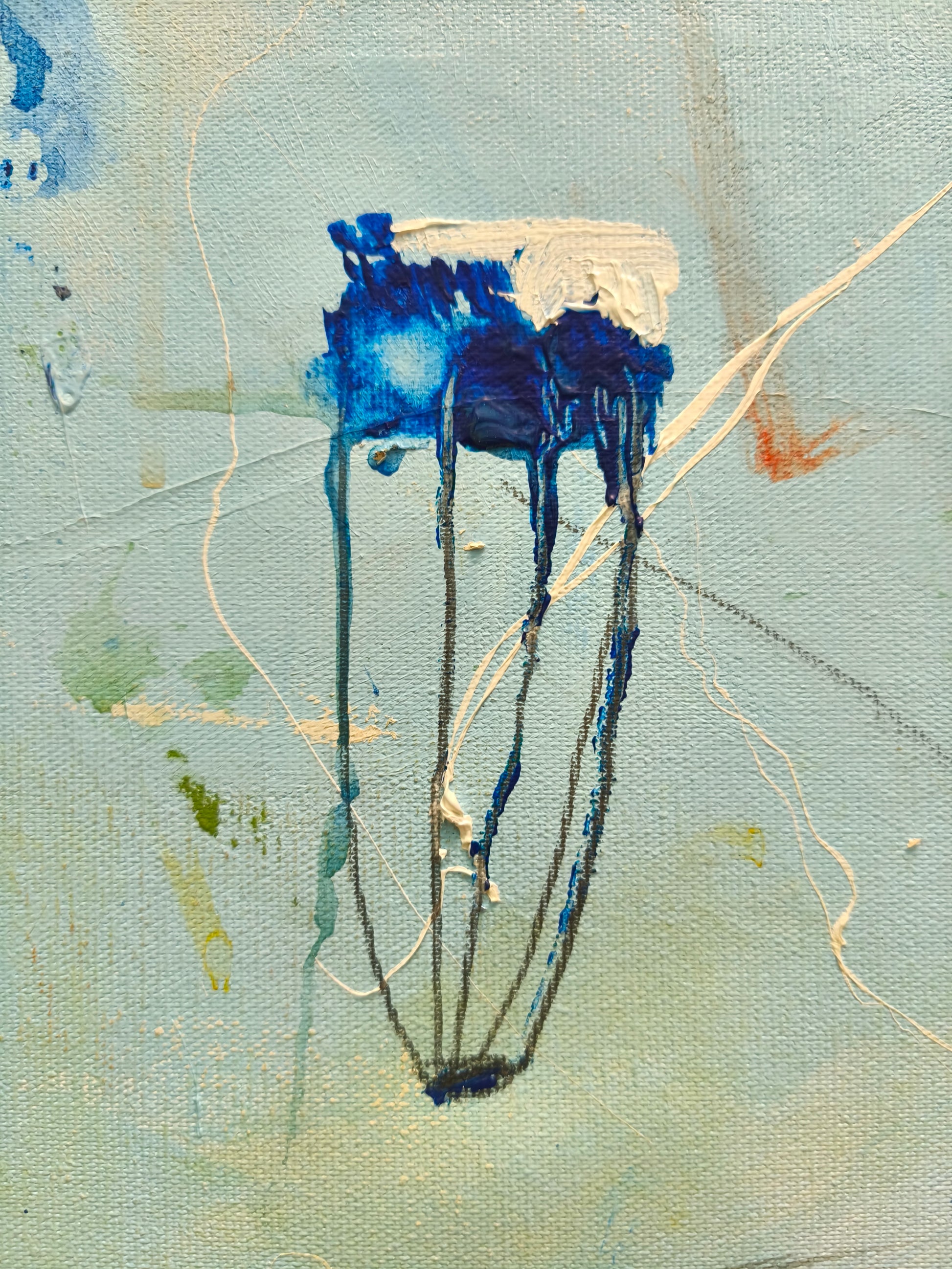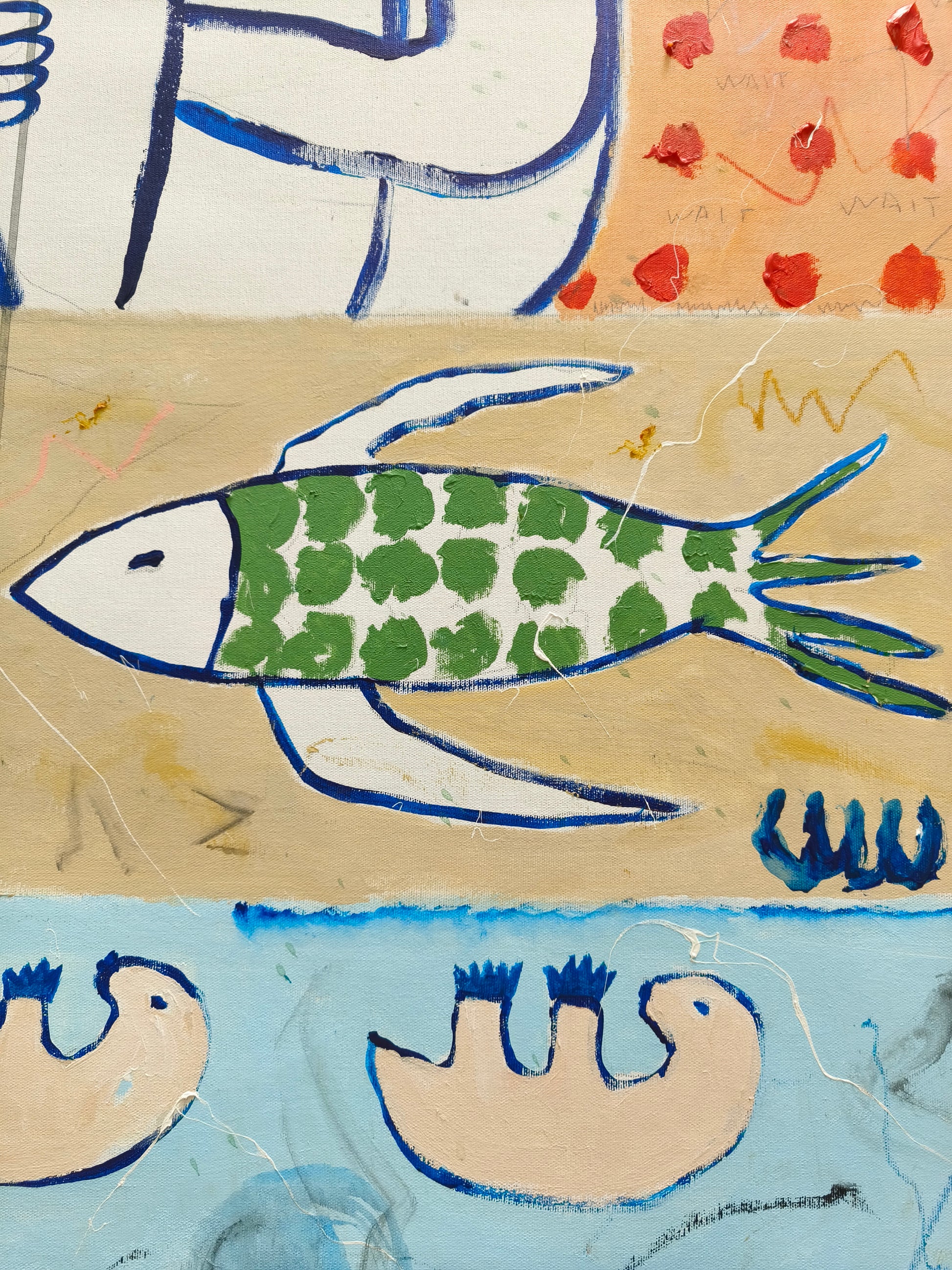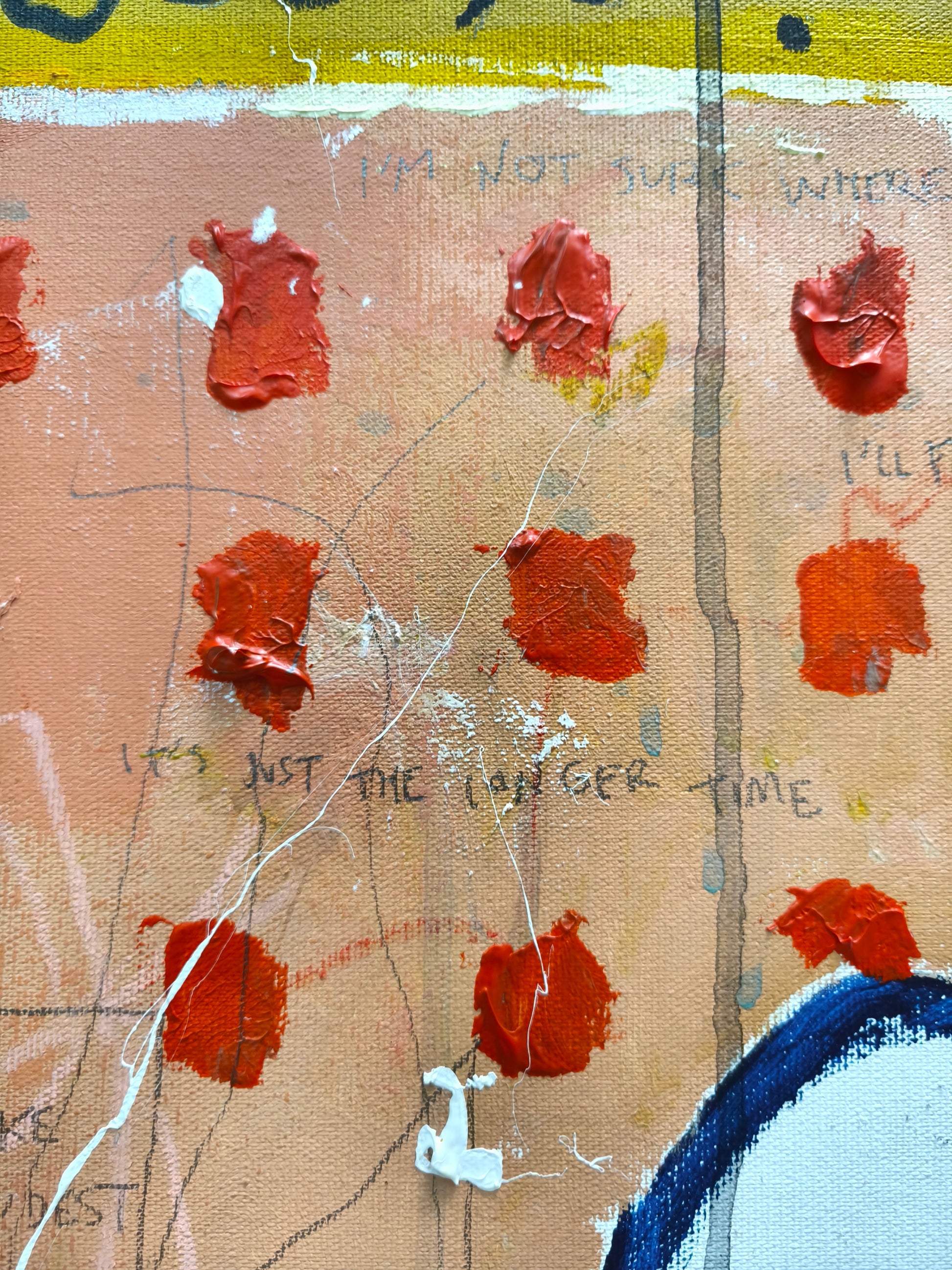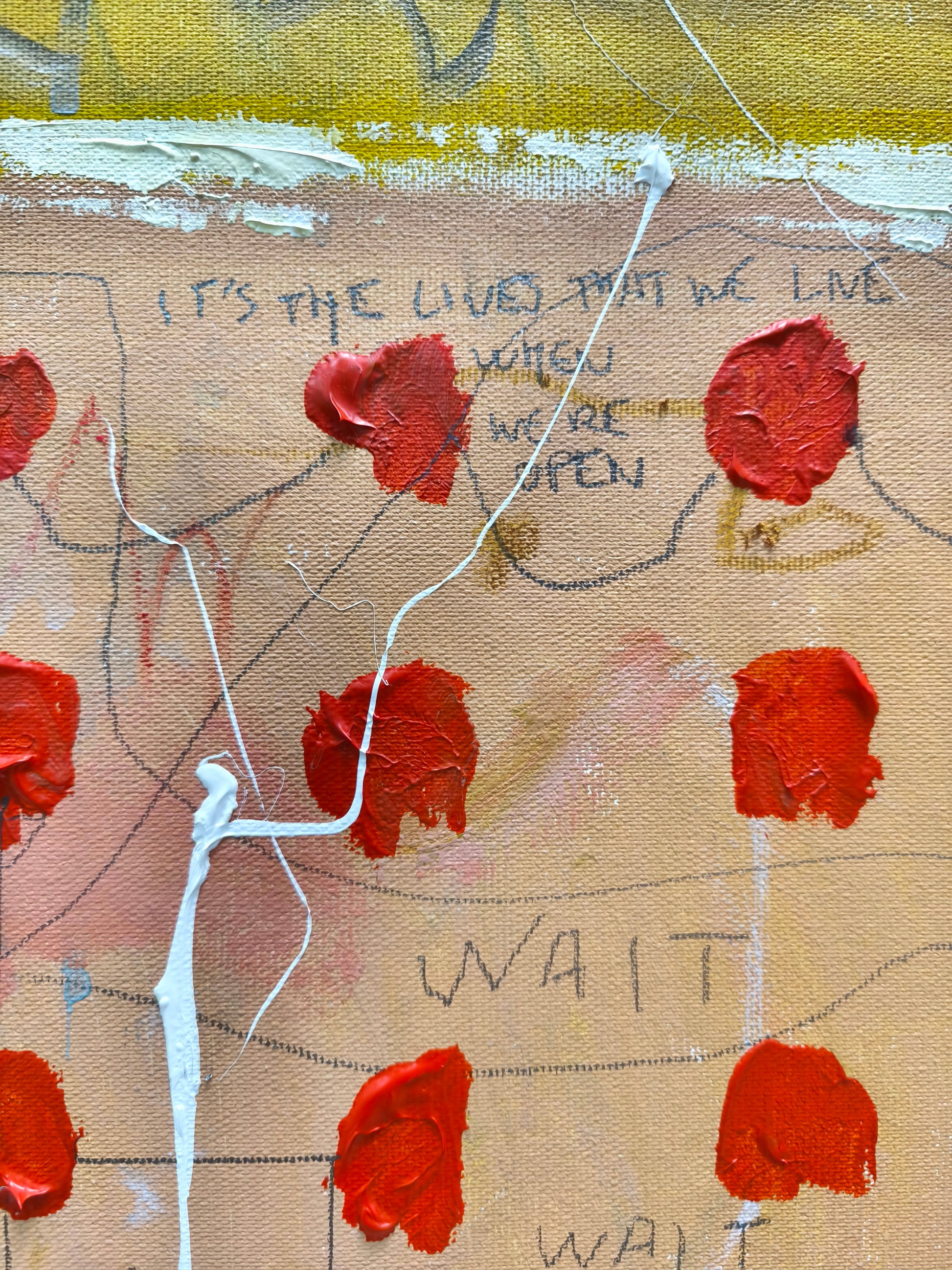 Cuadro trabajado desde la improvisación libre. Action painting con la música de de David O'Dowda, especialmente el tema "Wait" que suena durante la parte final de la ejecución y que acaba dándole el título.